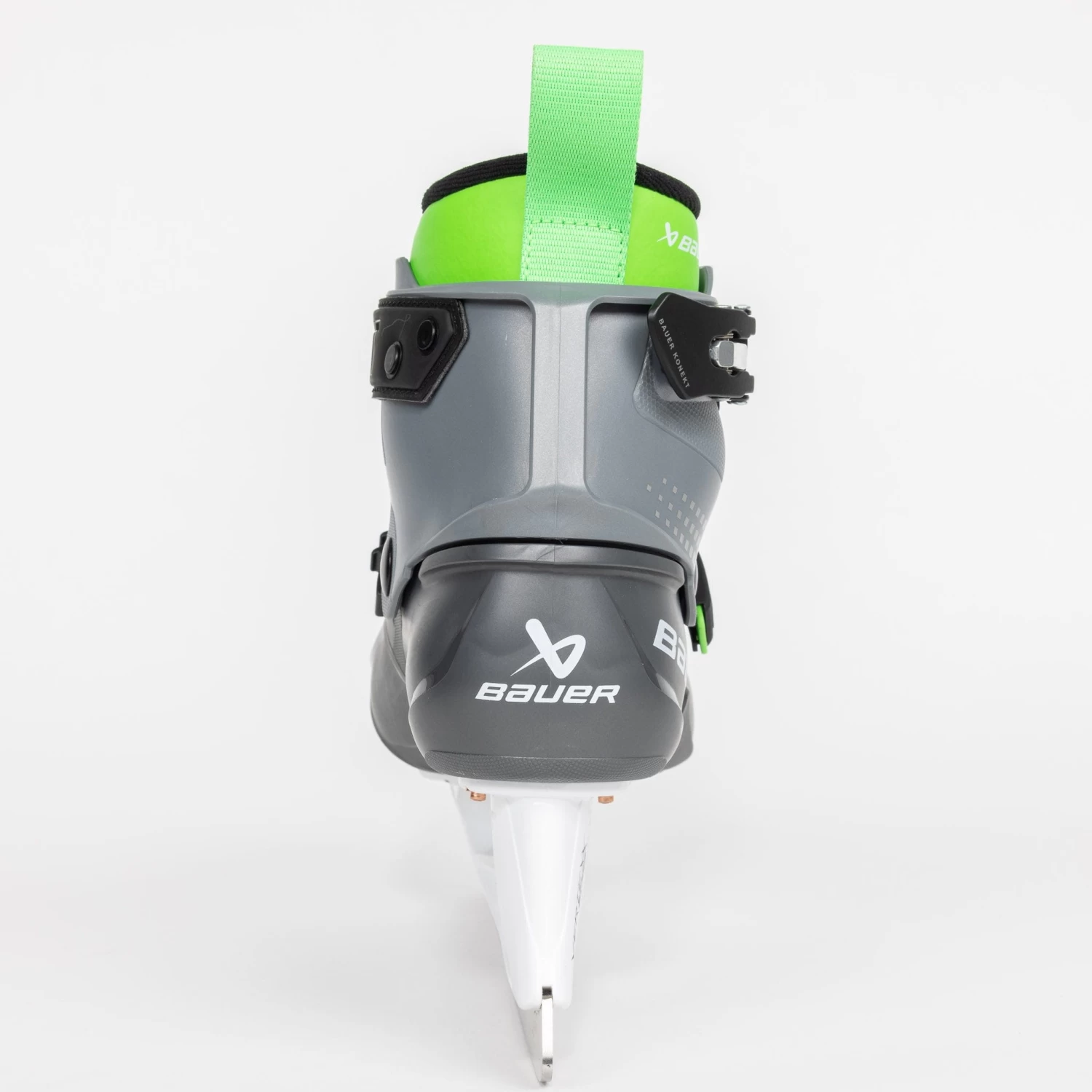 Bauer has been sticking with a black and green colouration for their KONEKT line, and there is no exception with the HF2 skates. The heel is adorned with the Bauer text logo, and their new image logo appears on the heel. The name KONEKT is seen in light grey along the side, and the HF2 branding is also present in the green insole.