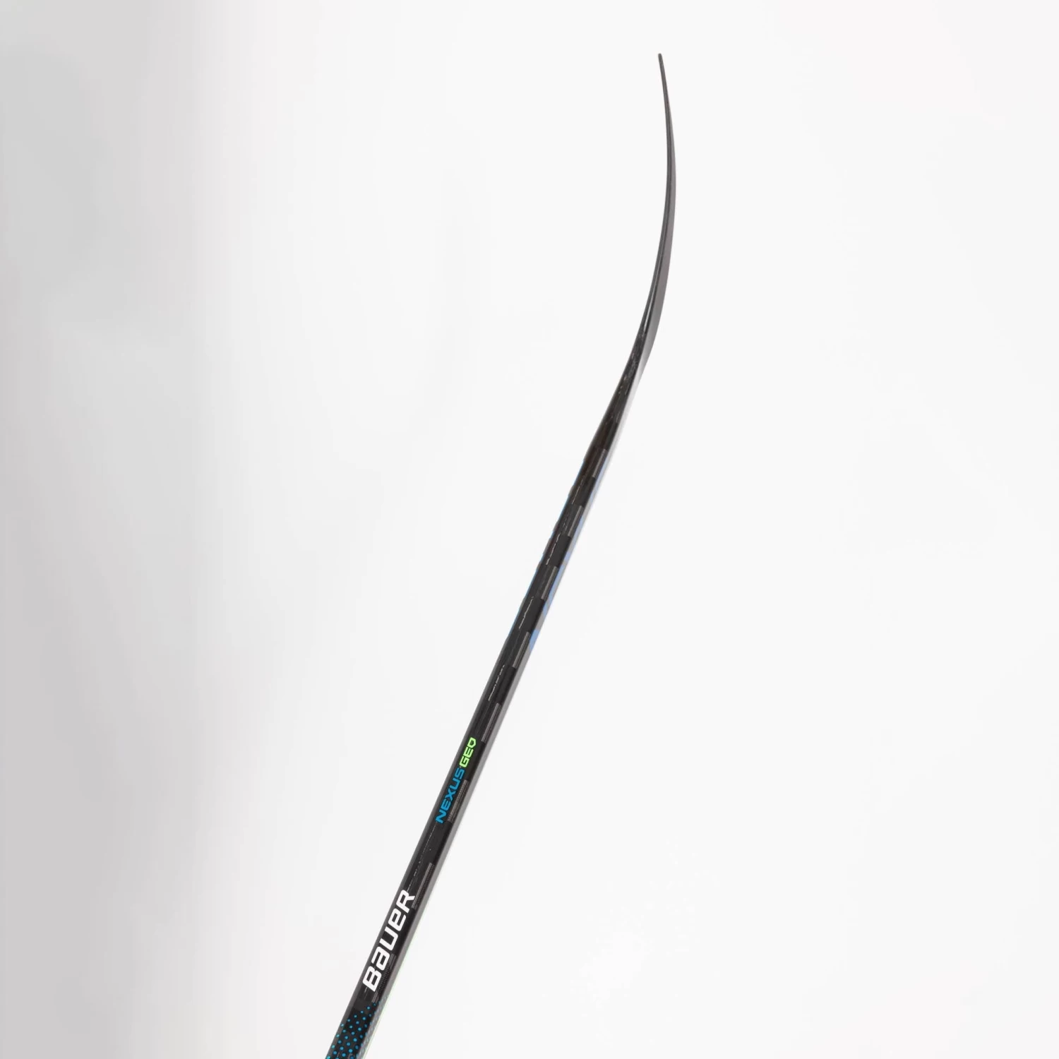 The Nexus Geo Stick features Bauer’s new ER Spine Technology, which is a 5-sided shaft geometry that removes excess carbon fiber layers from the loading zone of the stick. The 5-sided shaft shape gives you a unique feel which contours to the player’s hands for enhanced stick control and feel.