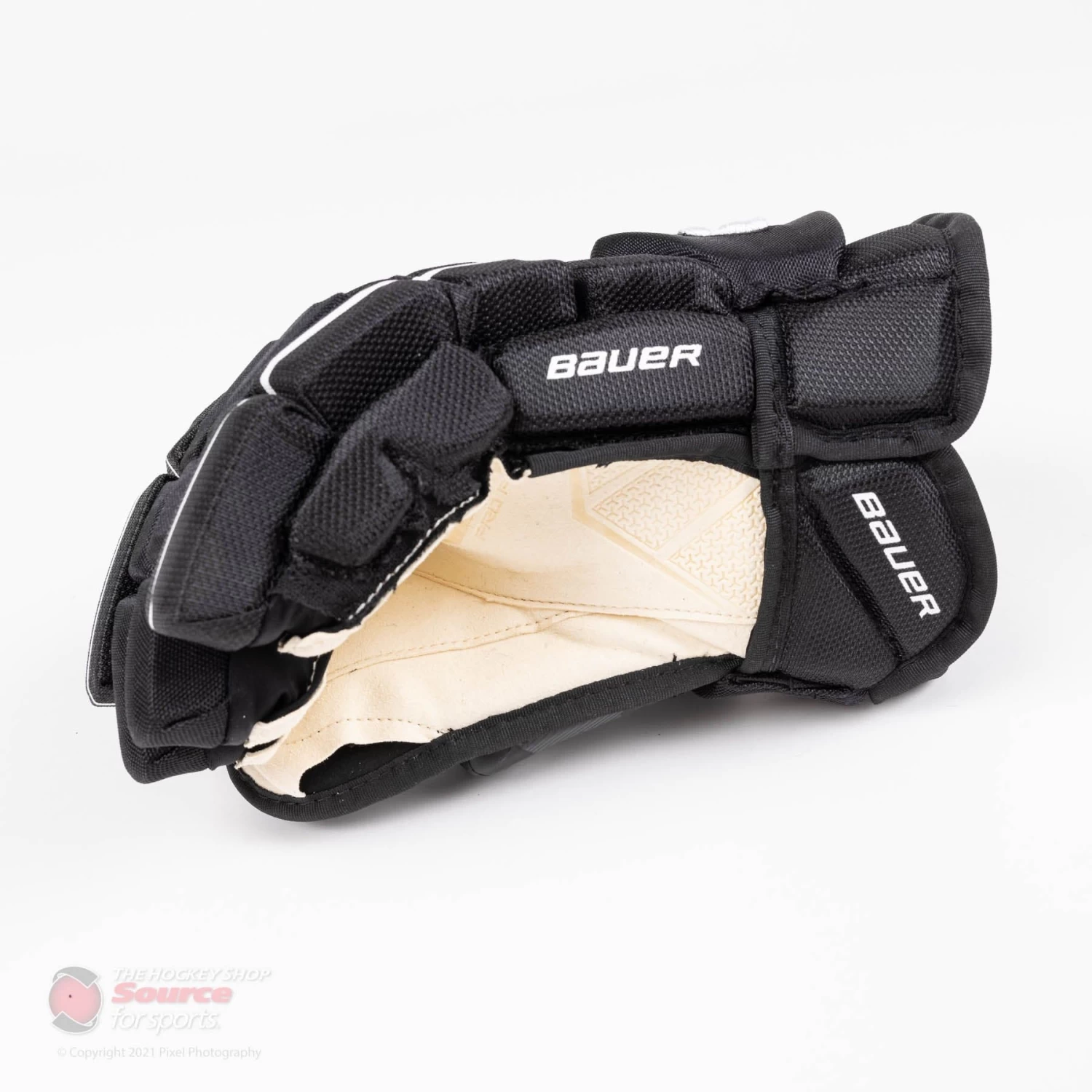 The 3S palm on the Bauer 3S Pro glove features an Ivory Pro Palm with a full overlay. It offers a soft feel and great connection from hand to stick. Furthermore, the gussets, which is the material in between each finger, is a soft elastic like fabric that helps the glove breath and maximizes the mobility in each finger.