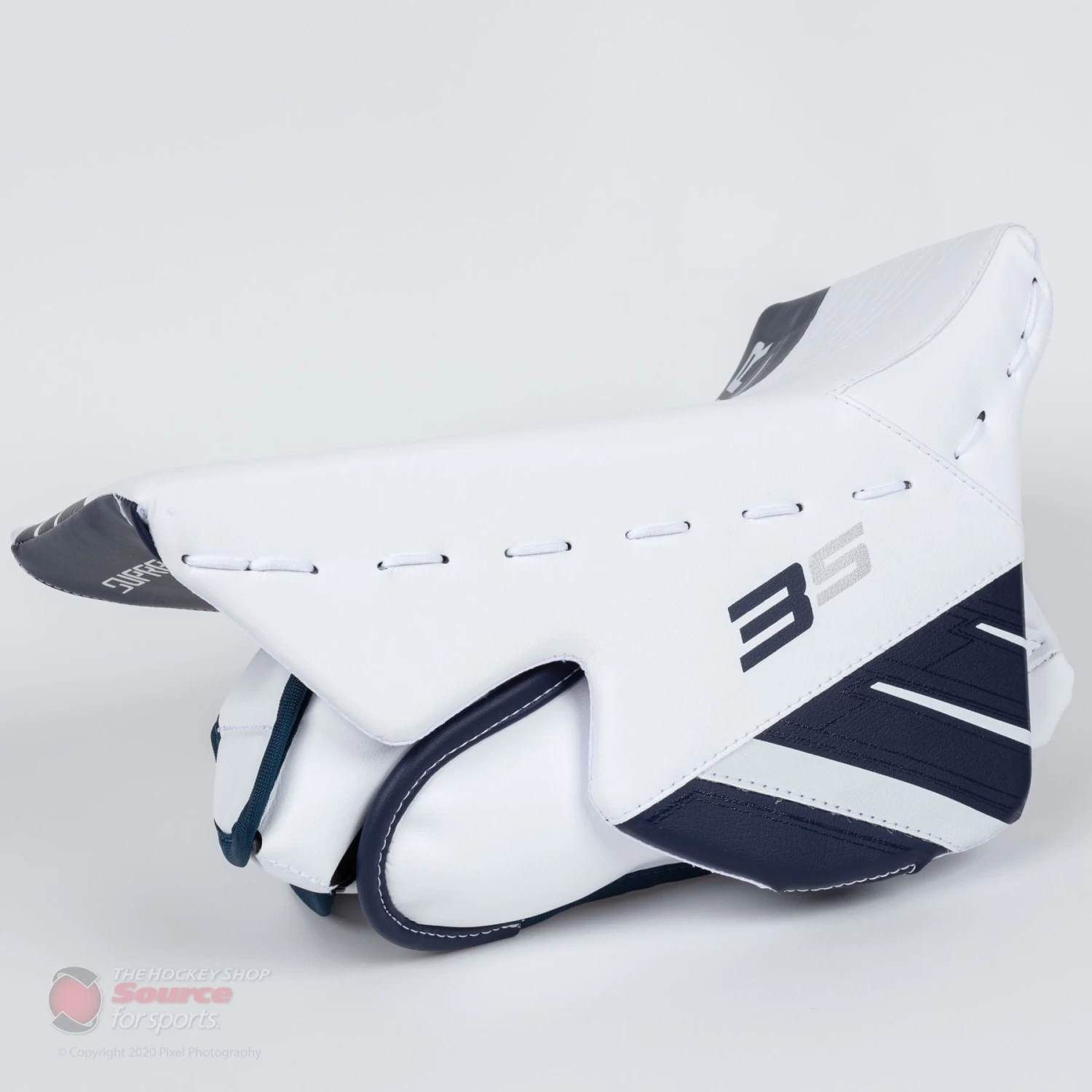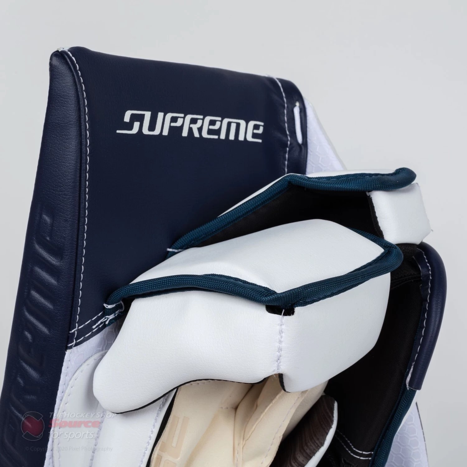 The shape of the blocker is going to be extremely familiar to those who have used a Supreme blocker recently. The side hand shape and protection is brought along from the 2S Pro, providing protection with Bauer’s Shocklite materials. Stock with Bauer’s Ultrasonic blocker there is no thumb pillow, but can be added in when going the custom route.