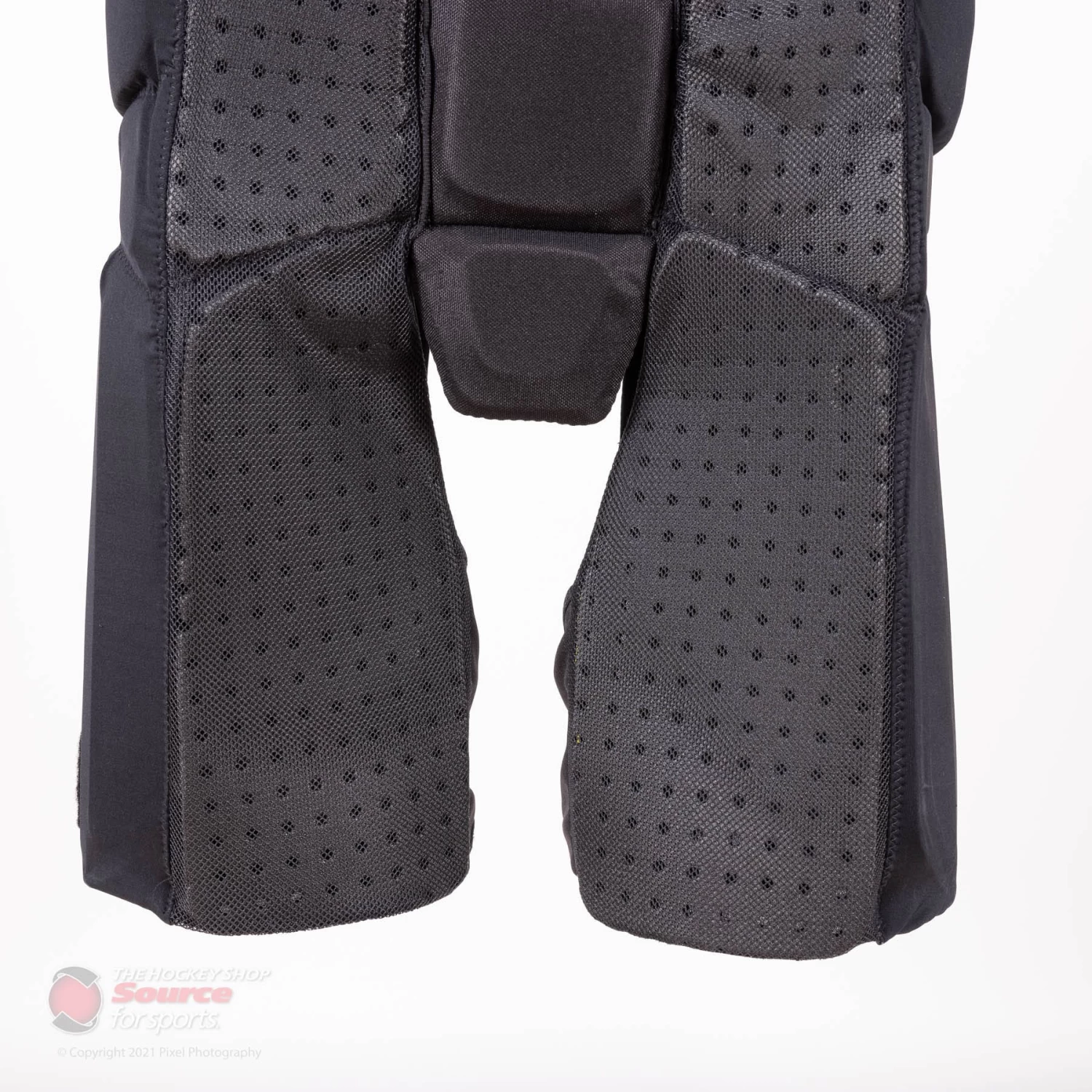 The tailbone is also protected with a high-density foam. This padding is connected to the hip and thigh guards to reduce the impact of any spills or sudden falls on the ice.