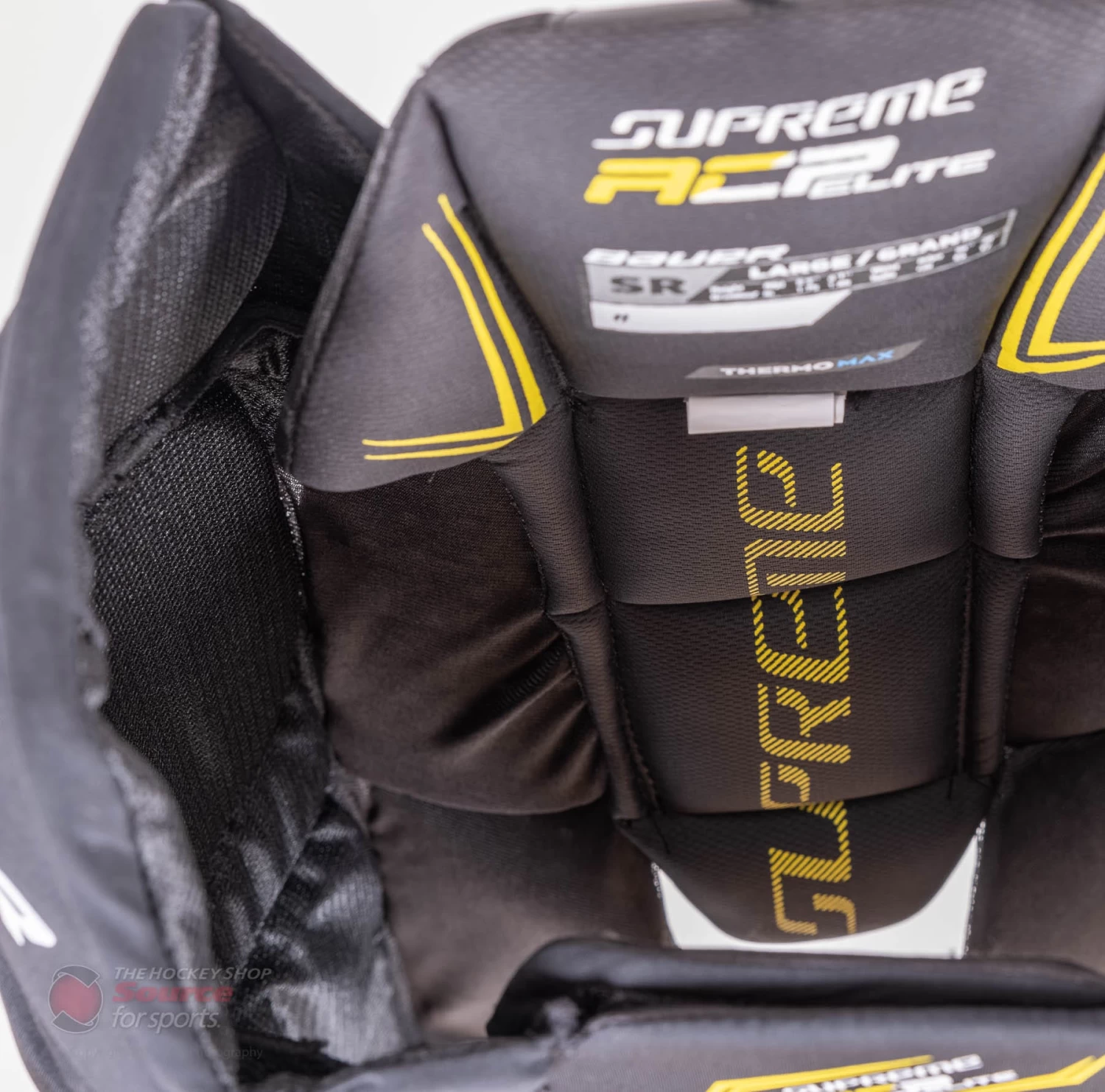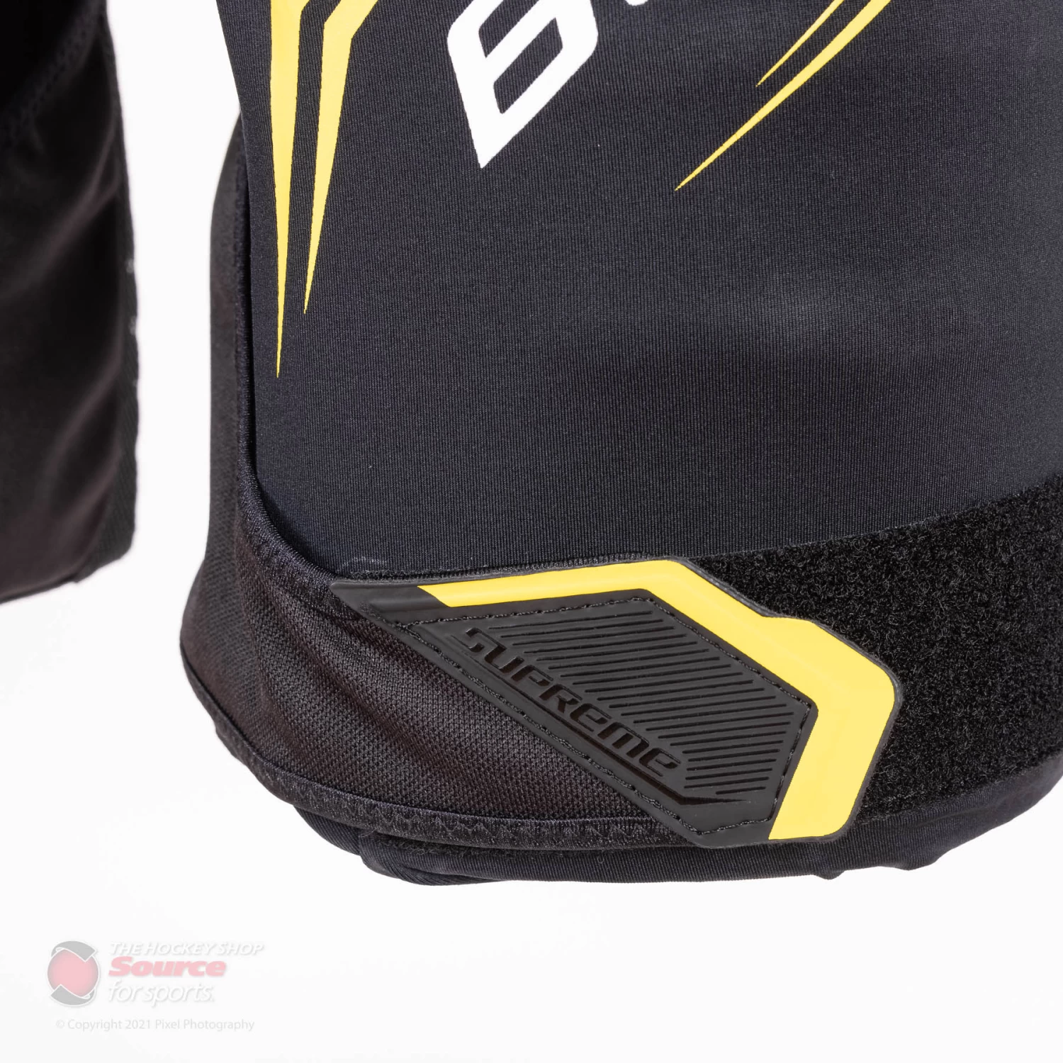 The Supreme ACP Elite girdle features a comfort flex segmentation with molded PE (Polyethylene) throughout the hips. This material is a very durable hard plastic that is also found in top of the line products in the Bauer family. The kidney area is also equipped with a vented armour foam insert that helps protect from unwanted contact in that area.