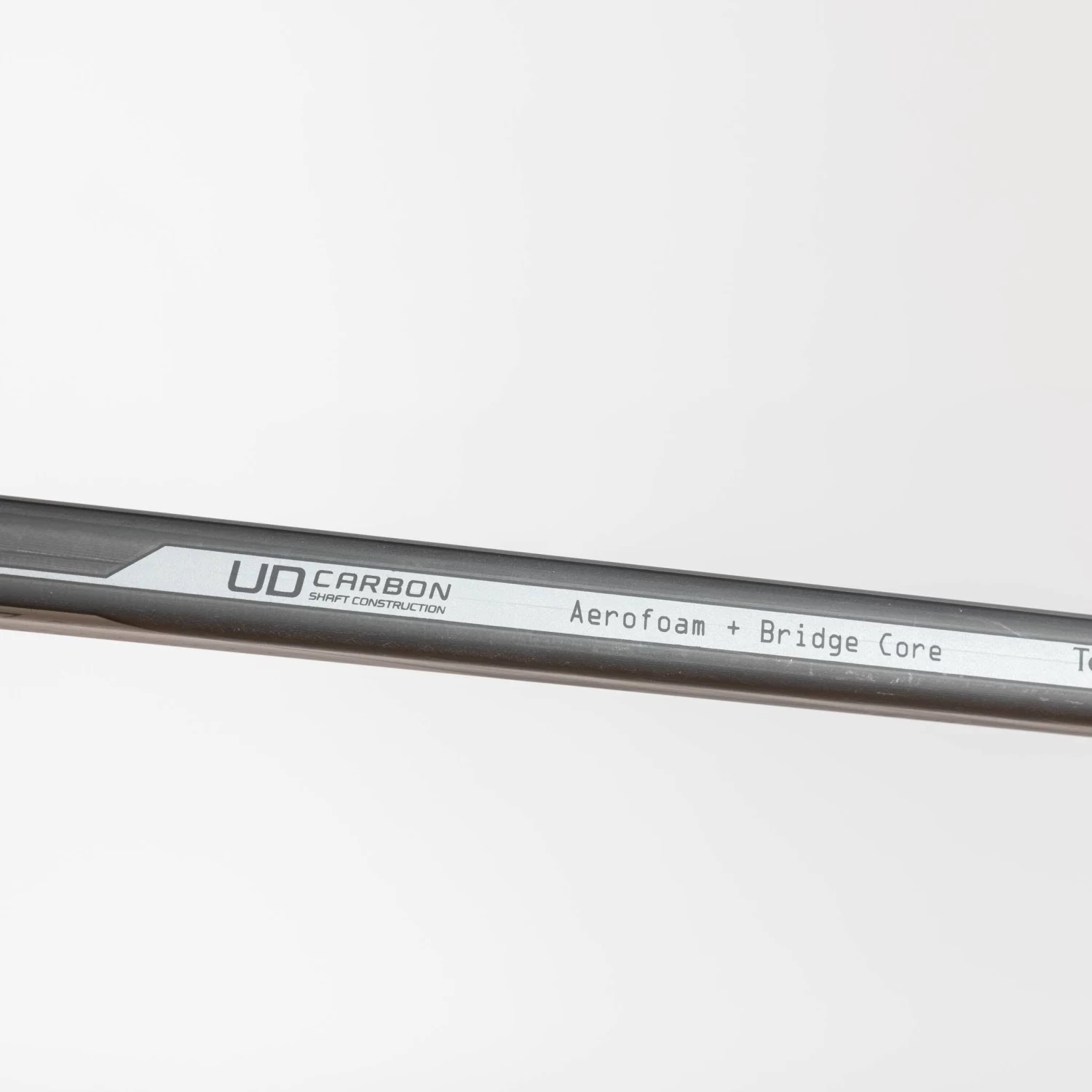 The shaft is constructed primarily of a unidirectional carbon fibre weave. UD carbon is a common and reliable weave option for goalie and player hockey sticks alike, as it allows the stick to be tough while also keeping it very lightweight.