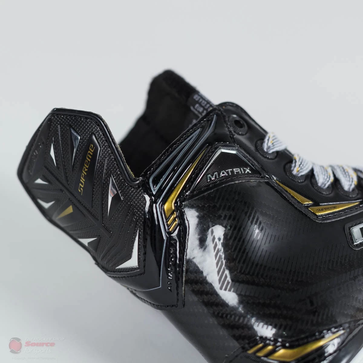 Bauer has upgraded the tongue on the Matrix to an all new Source Exclusive black 30oz felt tongue. This is beefed up with a MD foam metatarsal guard.