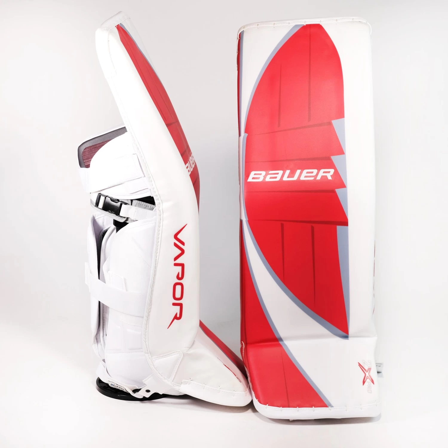 This custom Supreme Ultrasonic goalie leg pad is a pro return from Ohio State University goalie Tommy Nappier. This is a leg pad tailored specifically for Tommy Nappier, with his specific specs and preferences.