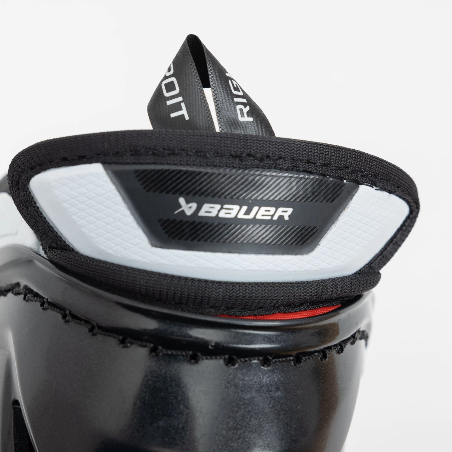 Bauer sticks to the Ergodynamic Lab knee for the Vapor Hyperlite shin guards because it gives a deeper fit for more protection, along with a comfier feel. On agility-based equipment, a closer fit is ideal since it can reduce more potential wind resistance.