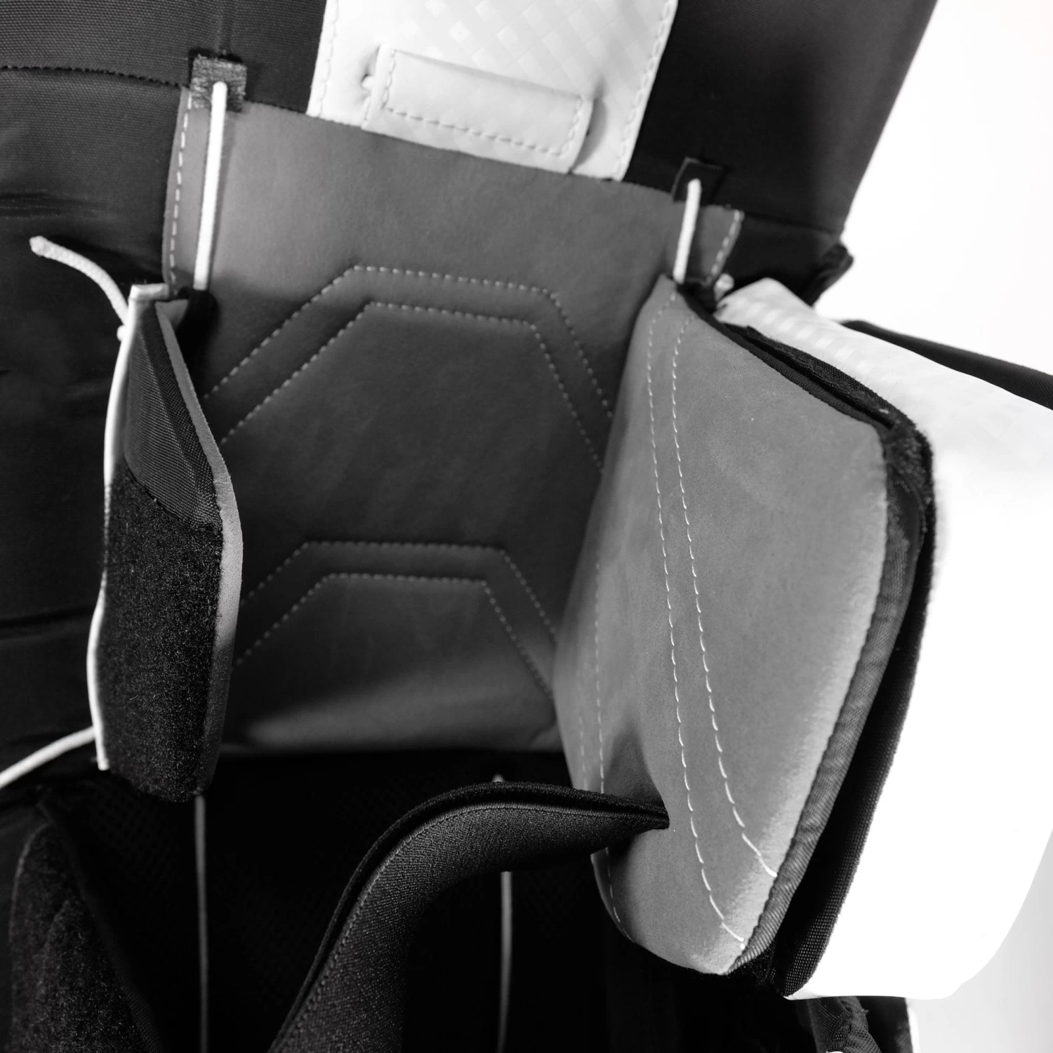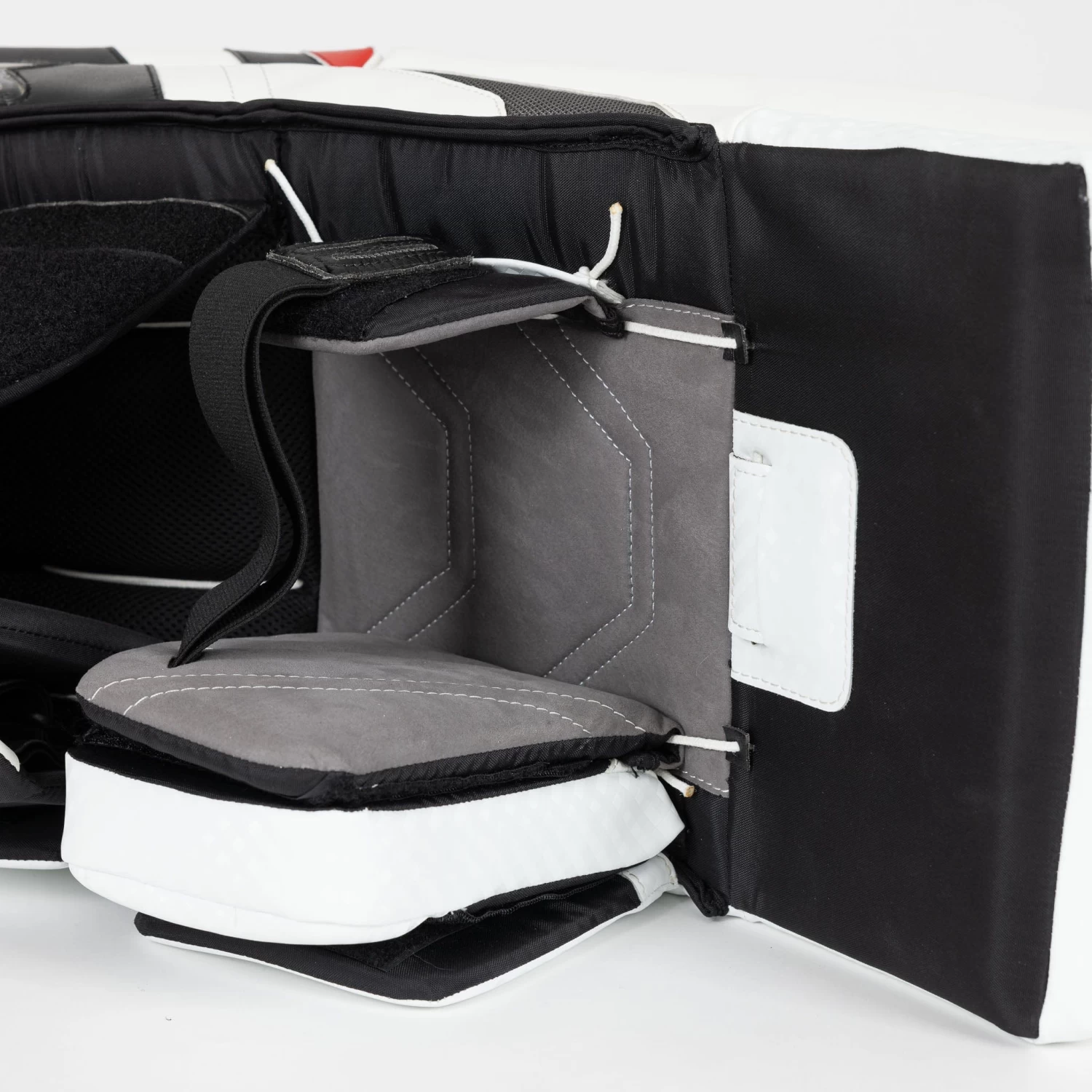 The internal core of the X5 has been optimized for more flexibility in a similar fashion to the top-of-the-line G-NETik V pads. The internal knee rolls have been modified to add some extra flex to the flat face construction at the knee. The thigh area has been stiffened on the X5 to better preserve the S-curve shape of the pad.