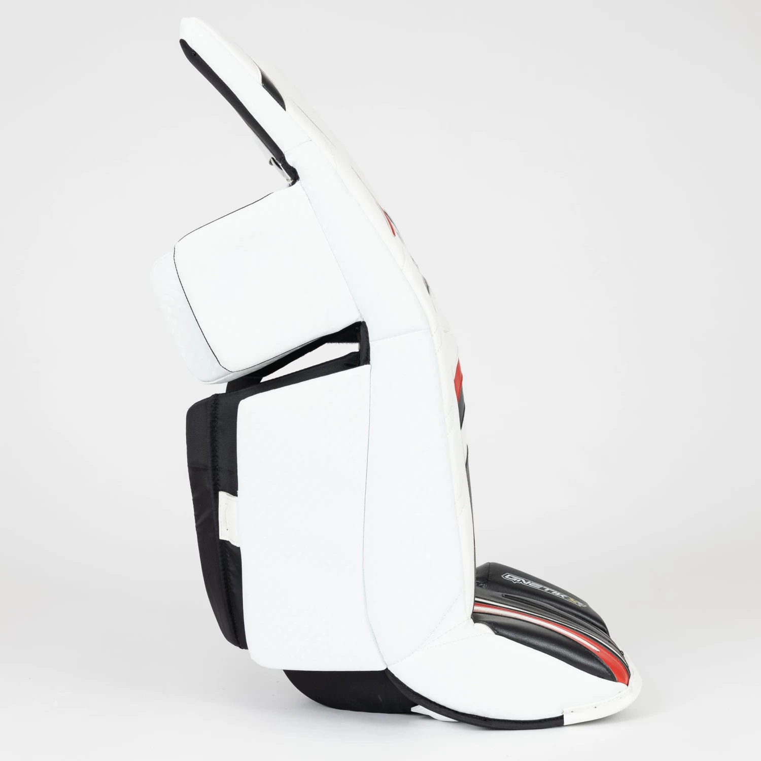 The Brian’s G-NETik X5 Junior Goalie Leg Pads come in sizes 27+1 and 29+1, and the following colourways: White, White/Black, White/Black/Red, White/Blue, and White/Red.