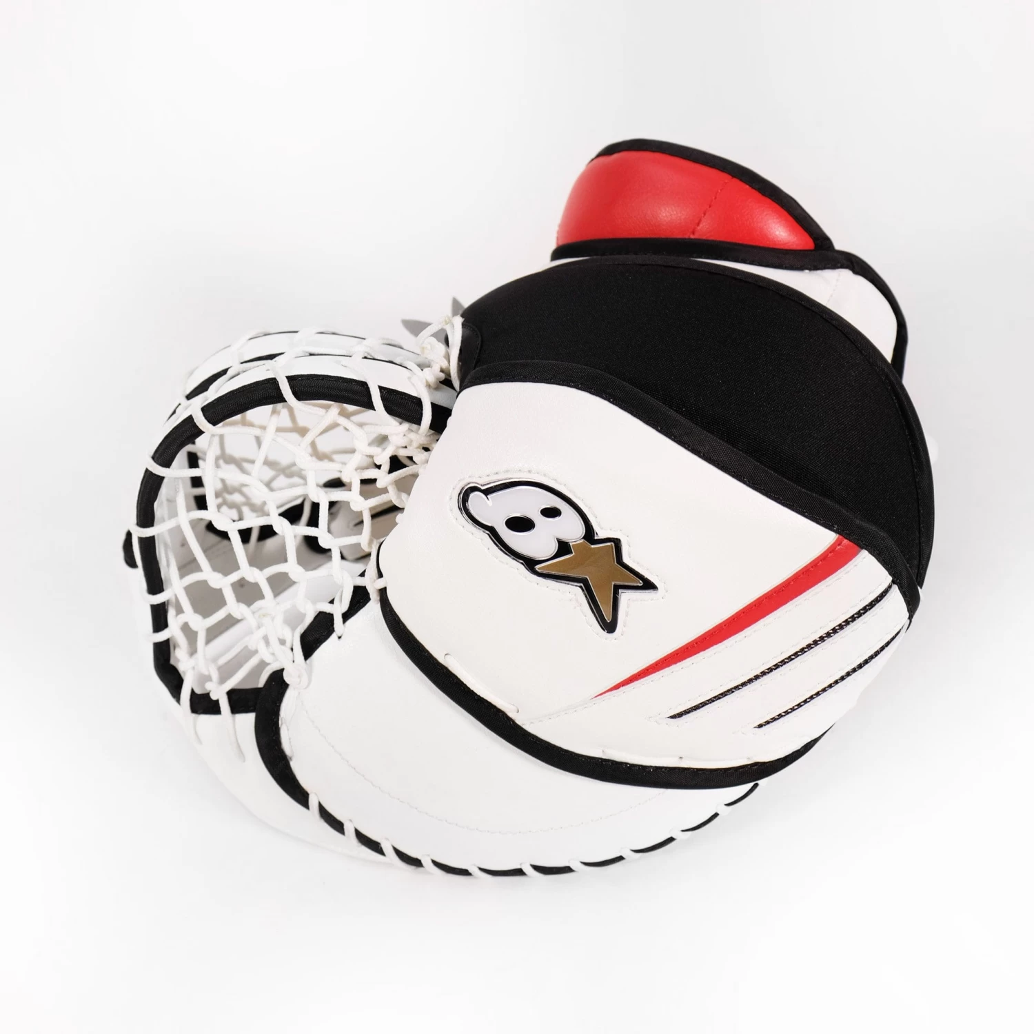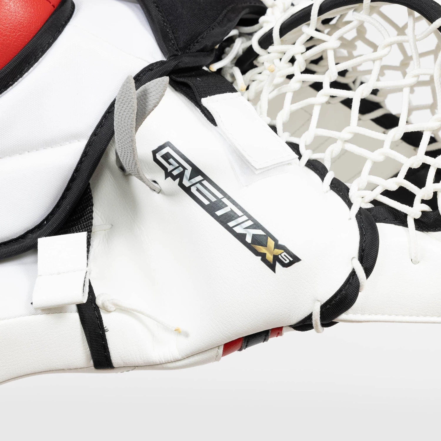 The Brian’s G-NETik X5 Senior Goalie Catcher comes in Regular and Full Right configurations, and the following colourways: White, White/Black, White/Black/Red, White/Blue, and White/Red.