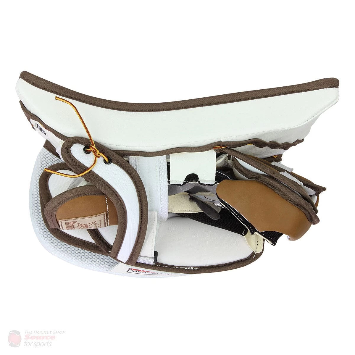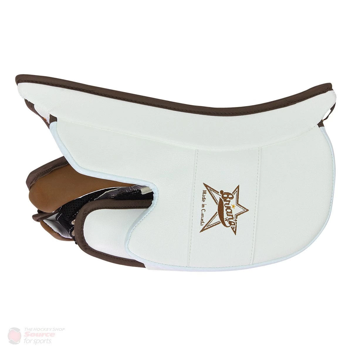 The Brian’s Heritage series blocker is handcrafted in Kingsville, Ontario, to the highest of industry standards. The Heritage series combine the modern designs of Brian’s more recent equipment with the aesthetic of their older equipment. The Heritage blocker features the same design as the G-NETik 3 blocker, with the same rigid sidewall and wide-open cuff for a great range of motion. Different from the G-NETik 3 blocker, the Heritage blocker has an offset blocker position which moves the palm up 1″ from centre. A bound blocker face and the traditional Brian’s graphic give the Heritage series blocker a true taste of the glory days.