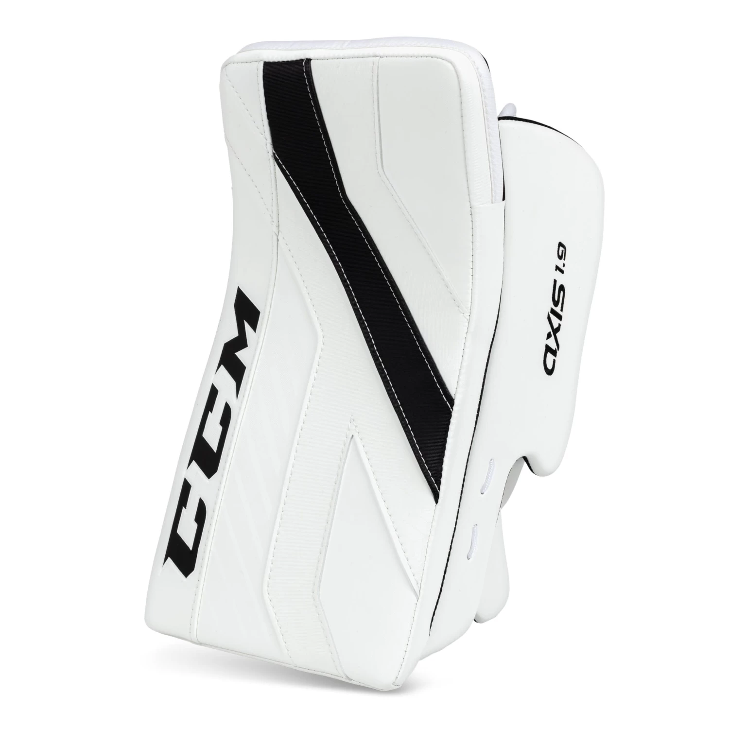 CCM’s AXIS A1.9 Source for Sports Blocker comes in some standard catalog colors, as well as some exclusive custom colorways. Colors offered are; All Black, All White, White/White/Black/Black, Chicago Blackhawks, Detroit Red Wings, Toronto Maple Leafs, and Vegas Golden Knights.