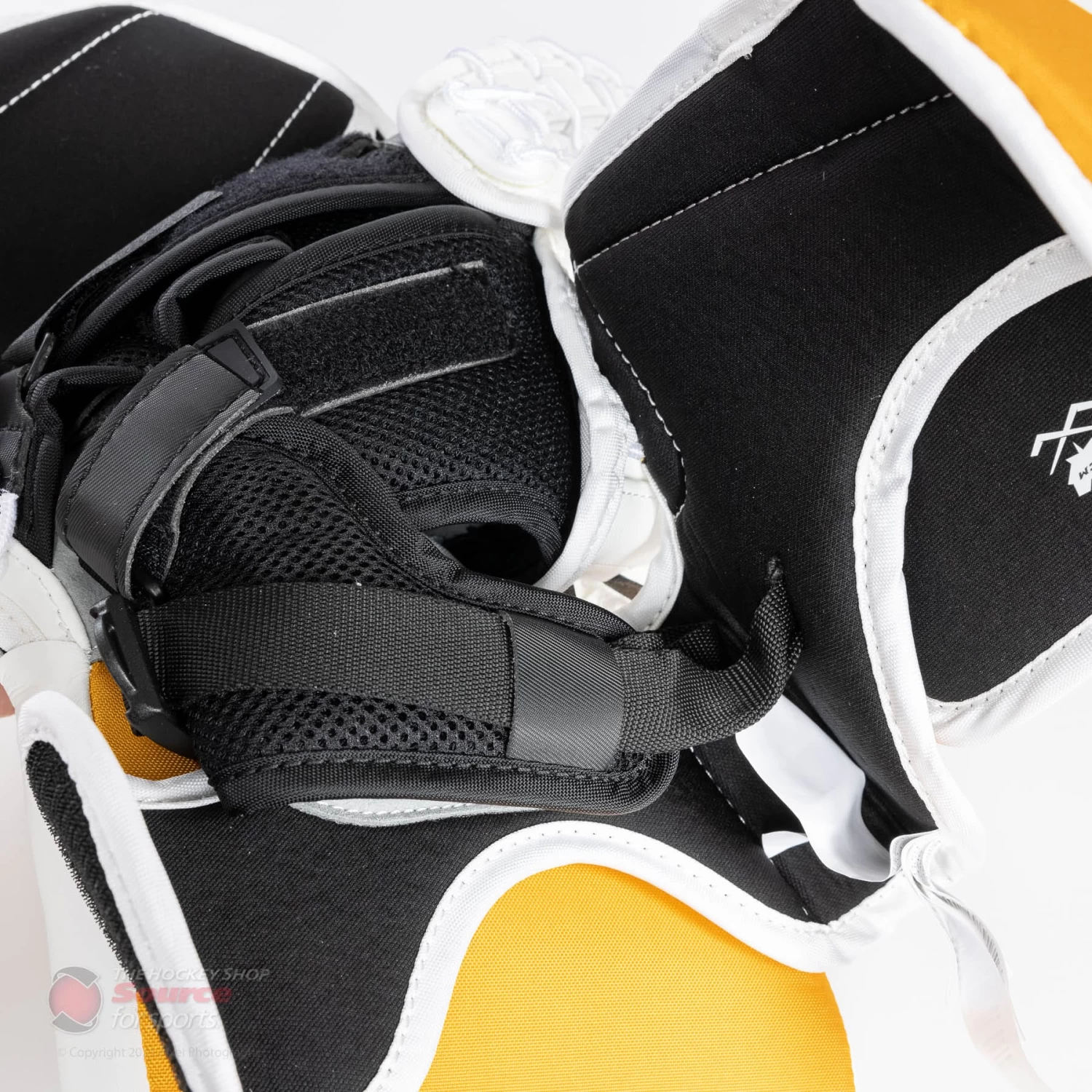 The back hand of the CCM E5.9 catch glove features velcro adjustments for the fingers, as well as the back of the hand. Goalies can also customize their fit by the quick release webbing strap on the wrist, which allows for easy and secure adjustment.