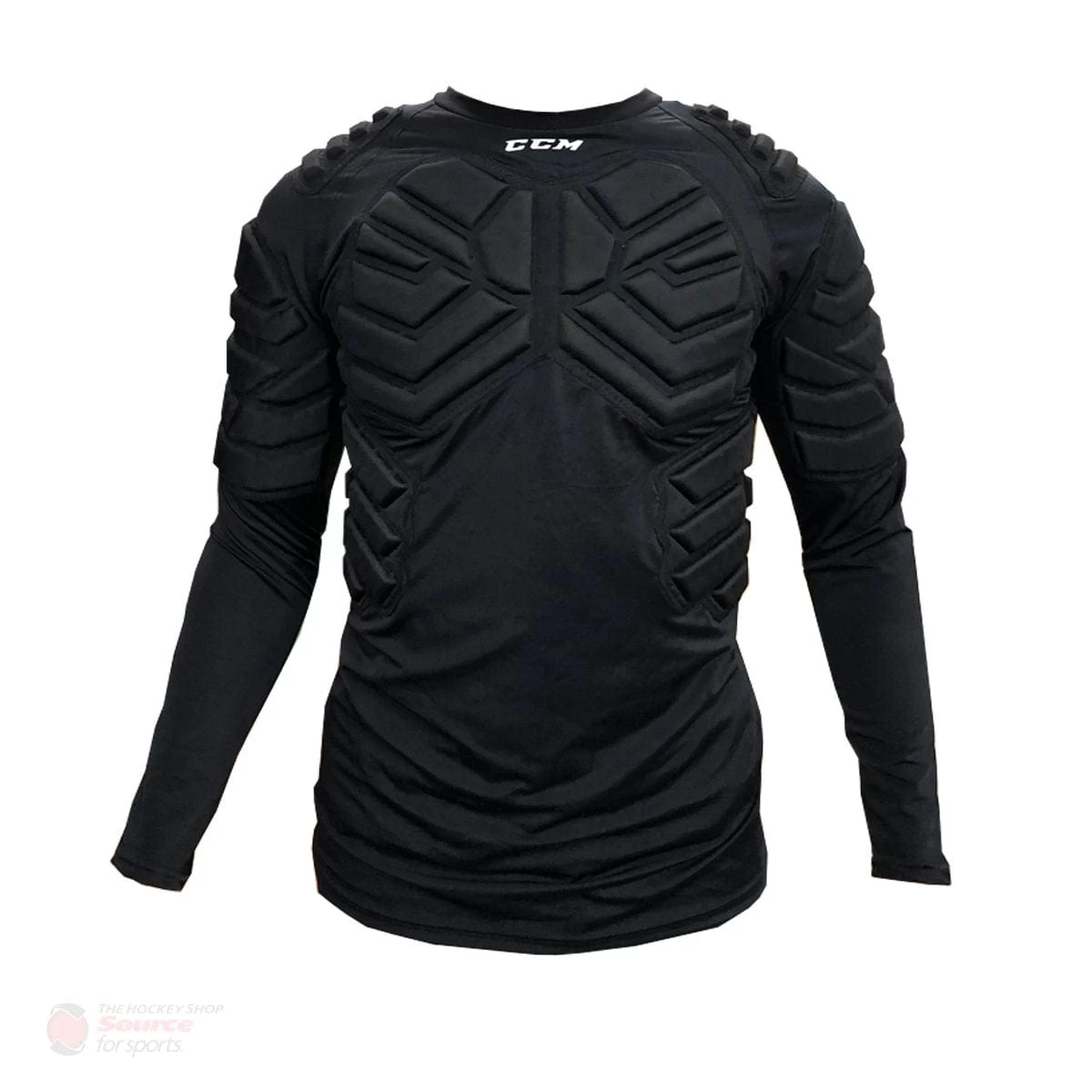 CCM’s padded goal shirt offers supplemental protection to goalies that are after more protection during practice, or perhaps using an aging chest/arm. An additional benefit, the added shoulder foam gets the chest protector to sit higher and increase net coverage. Other added foams in the bicep, sternum and rib protect vulnerable areas usually poorly covered by conventional chest/arms. Finally, a fully mesh back panel and perforated foams throughout increase air flow to reduce heat retention and speed up drying time.