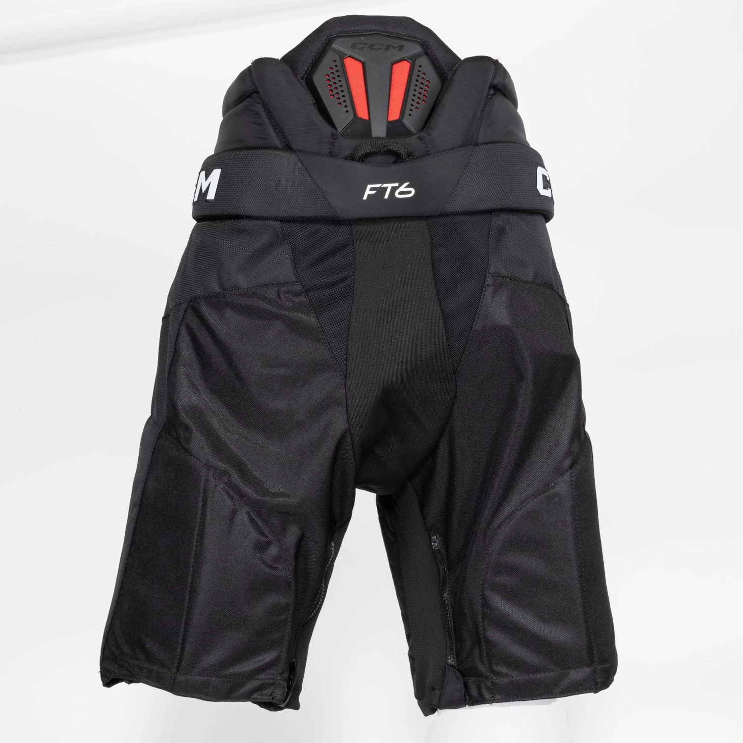 The Jetspeed FT6 Senior hockey pants come in sizes Small, Medium, Large, and XLarge in the following colourways: Black, Navy, and Red.