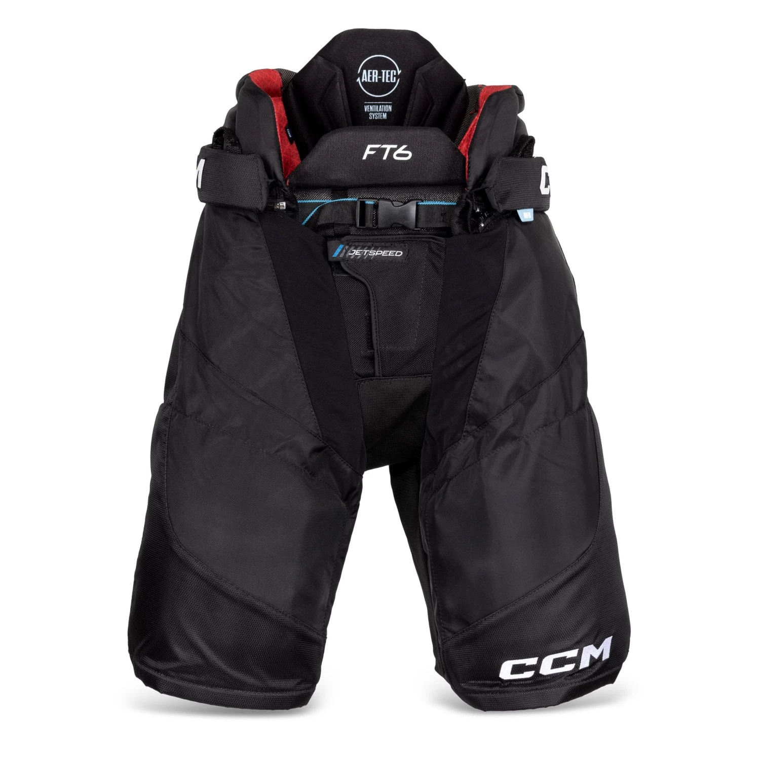 CCM’s next shift in focus for 2023 is in the new Jetspeed FT6 line. The Jetspeed FT6 gear puts emphasis on breathability and mobility, which means much of the new tech found in the gear will be light, discreet, and designed to keep you cool. The FT6 hockey pants feature an Aer-Tec Thermoregulation System, Dryfoam technology, and an injection-molded hybrid spine shield.