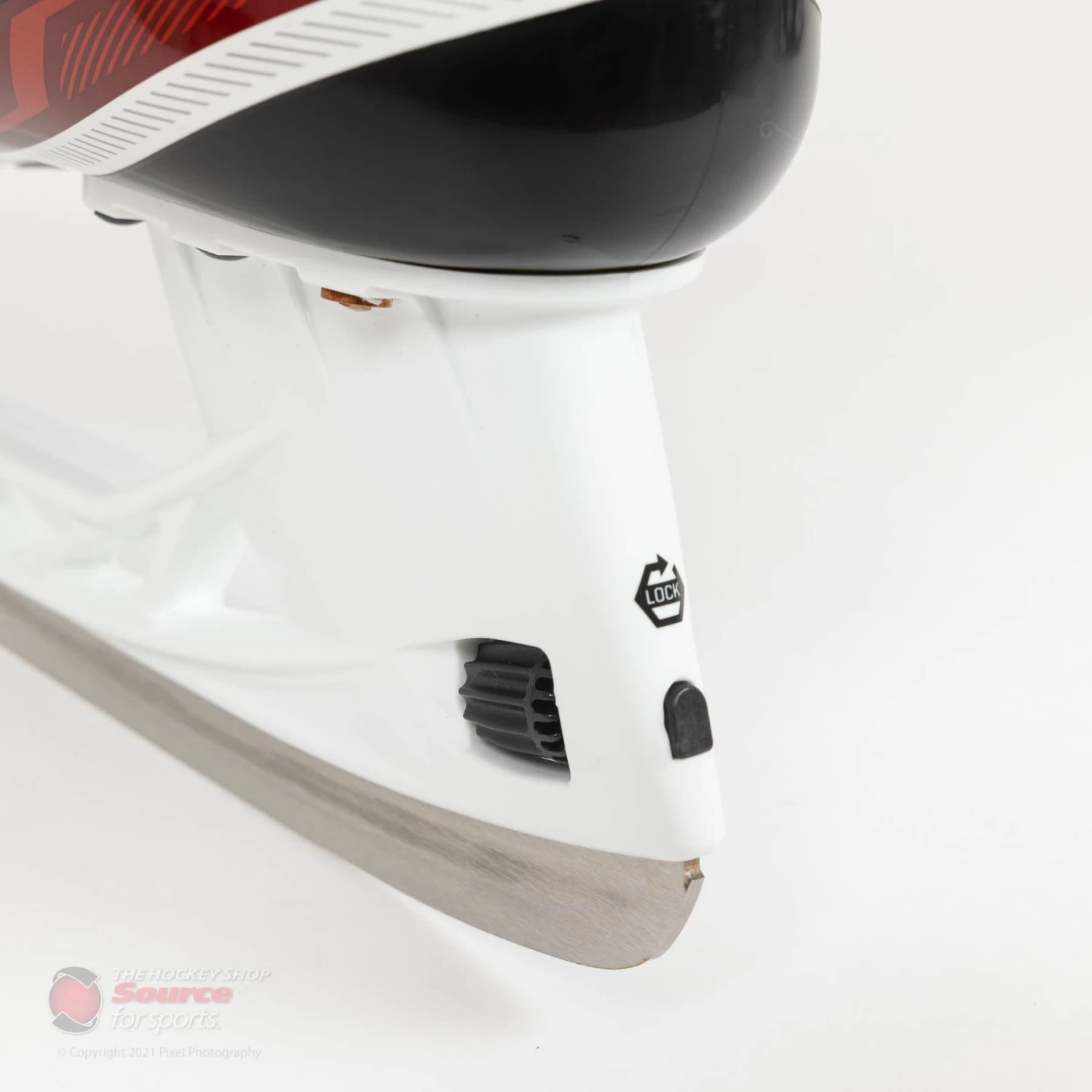 The graphic on the Jetspeed Shock Skate is quite similar to the Vibe. It adds the CCM logo on the side of the boot and the FT4 Pro liner graphic as well. The flash but clean back red and white pattern will have the skate sure to be noticed.