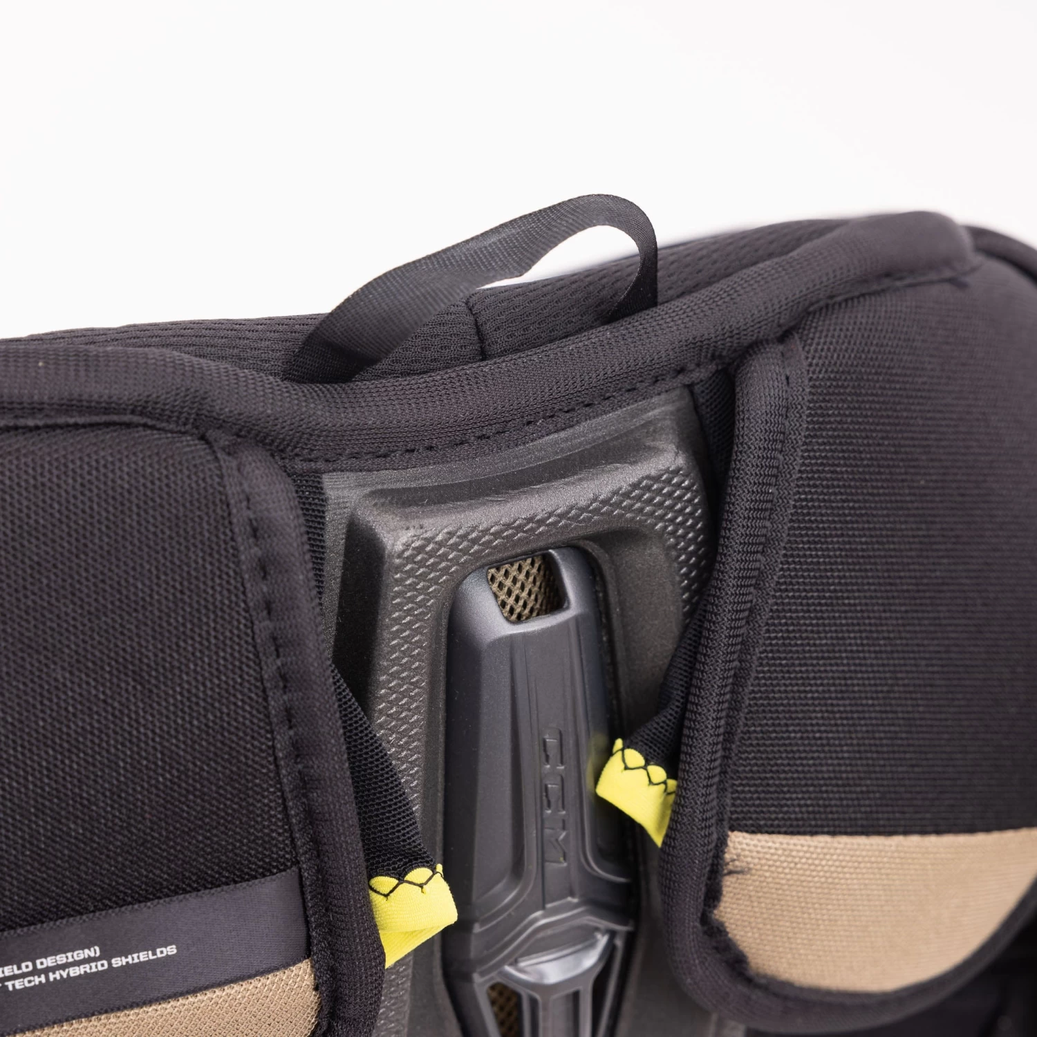 The Dual Core HD foam caps ensure you are well-protected in the shoulder area. The caps are complete with exposed foam covers for a clean finish and pro-level padding on impact. CCM continues to use D3O foam in their protectives, including in the AS-V Pro gear. D3O foam has amazing cushioning and absorption properties, claims backed even in its use in military equipment. In the shoulder caps, the pads are equipped with D3O Aero foam on the inside, as well as visible D3O Lite Frontal Impact Pods.