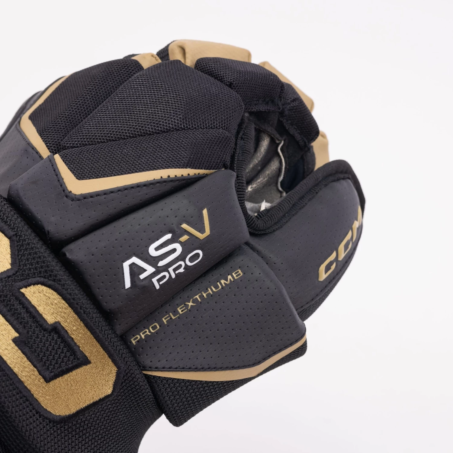 The Anatomical Shield Design is a major asset that the AS-V Pro gloves bring to the table. The glove overall is modeled to form around your hand with some additional space for greater comfort and mobility. Externally, CCM integrated a ton of different materials in strategic areas to enhance coverage, flexibility, durability, and comfort. CCM opted for tough nylon, breathable synthetic leather, and Nash material as the main materials used over the outside of the glove.