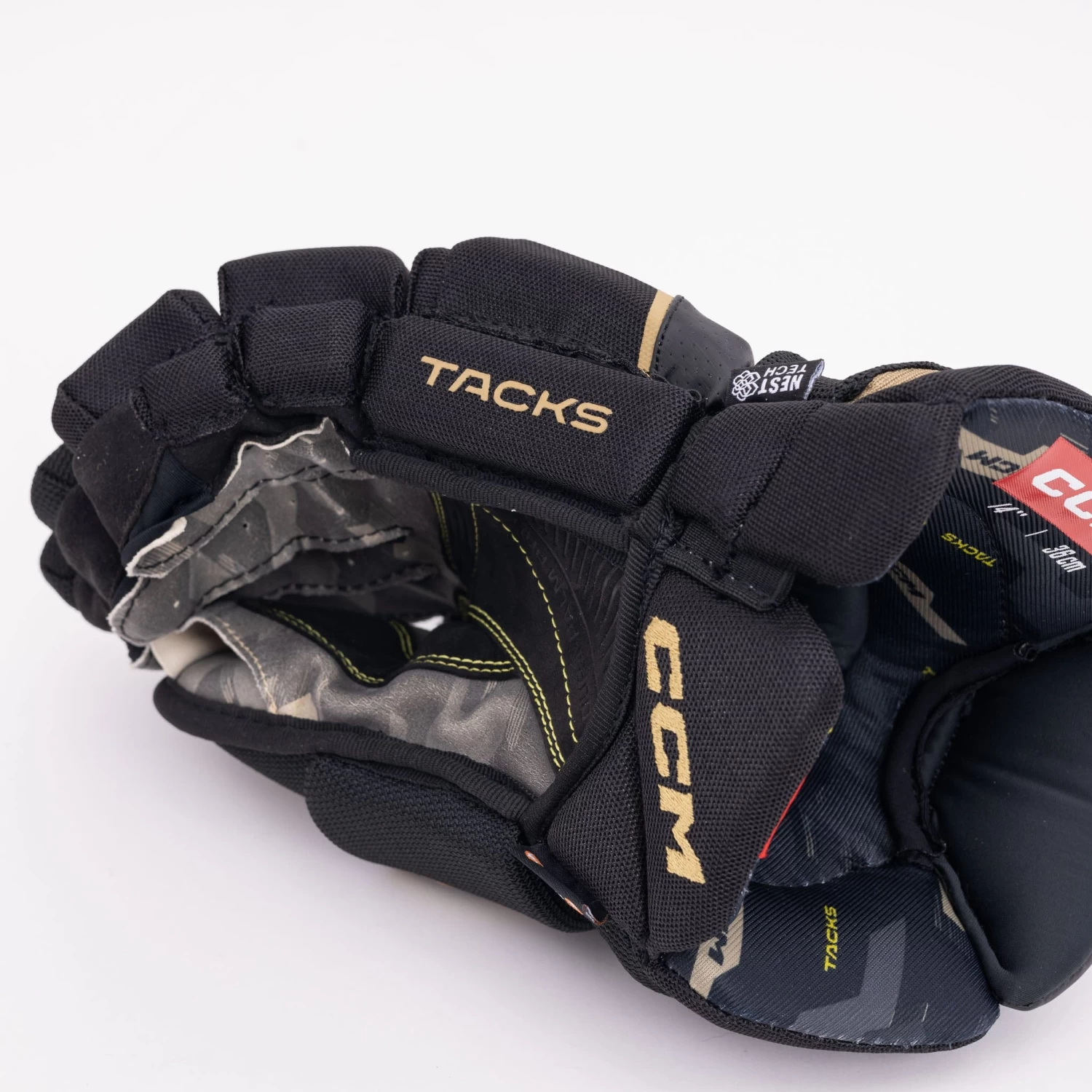 To change up the style a bit for 2022, CCM opted for a darker gold in their Tacks line rather than the classic yellow. The AS-V Pro comes in sizes 13”, 14”, and 15” in Senior, and the following colourways: Black/Gold, Black/Red/White, Black/White, Navy/Red/White, and Navy/White.