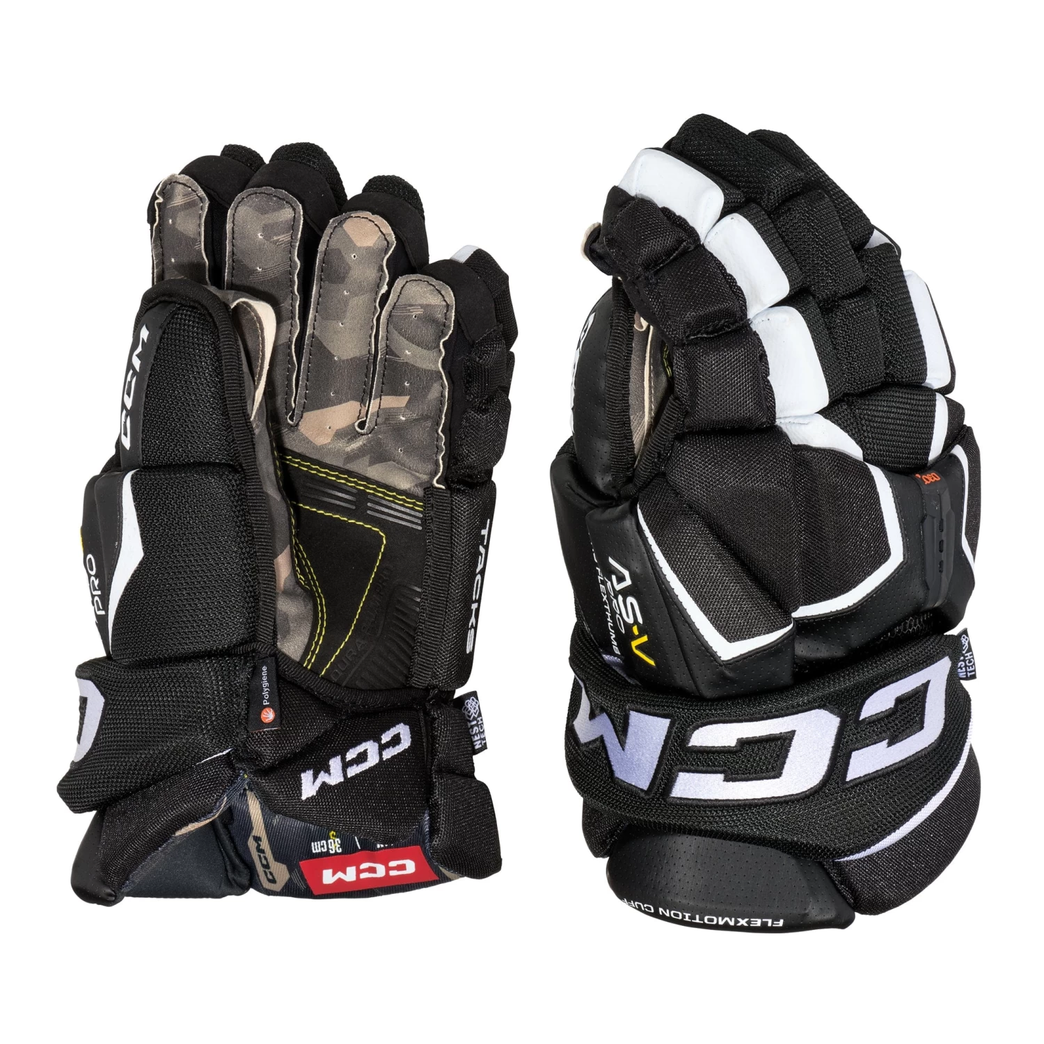 The Tacks AS-V Pro gloves are equipped with premium high-density foam and PE inserts inside the fingers. The fingertips are reinforced with smooth, durable Nash material for extra protection. The fingers have been built to be comfortable and flexible right out of the box, permitting you to perform at your best as soon as you step on the ice with them. To enhance those characteristsics, both the middle and index fingers use a three-piece design.