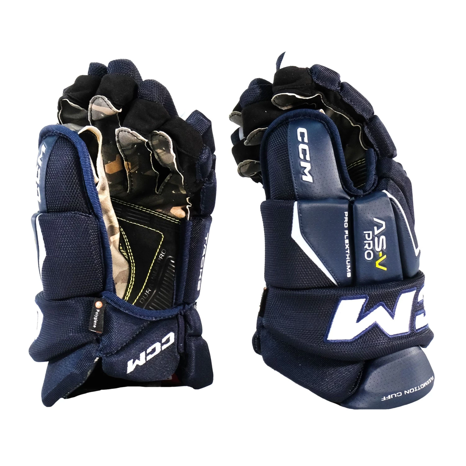 CCM included many features in their AS-V Pro palm. The palm is not only made of AX Suede synthetic leather material, but it has also been reinforced with a Dura-Palm Pro material, keeping it from early wear and tear. The palm is tacky, which helps keep it attached to your stick while you play, with less effort required from you.