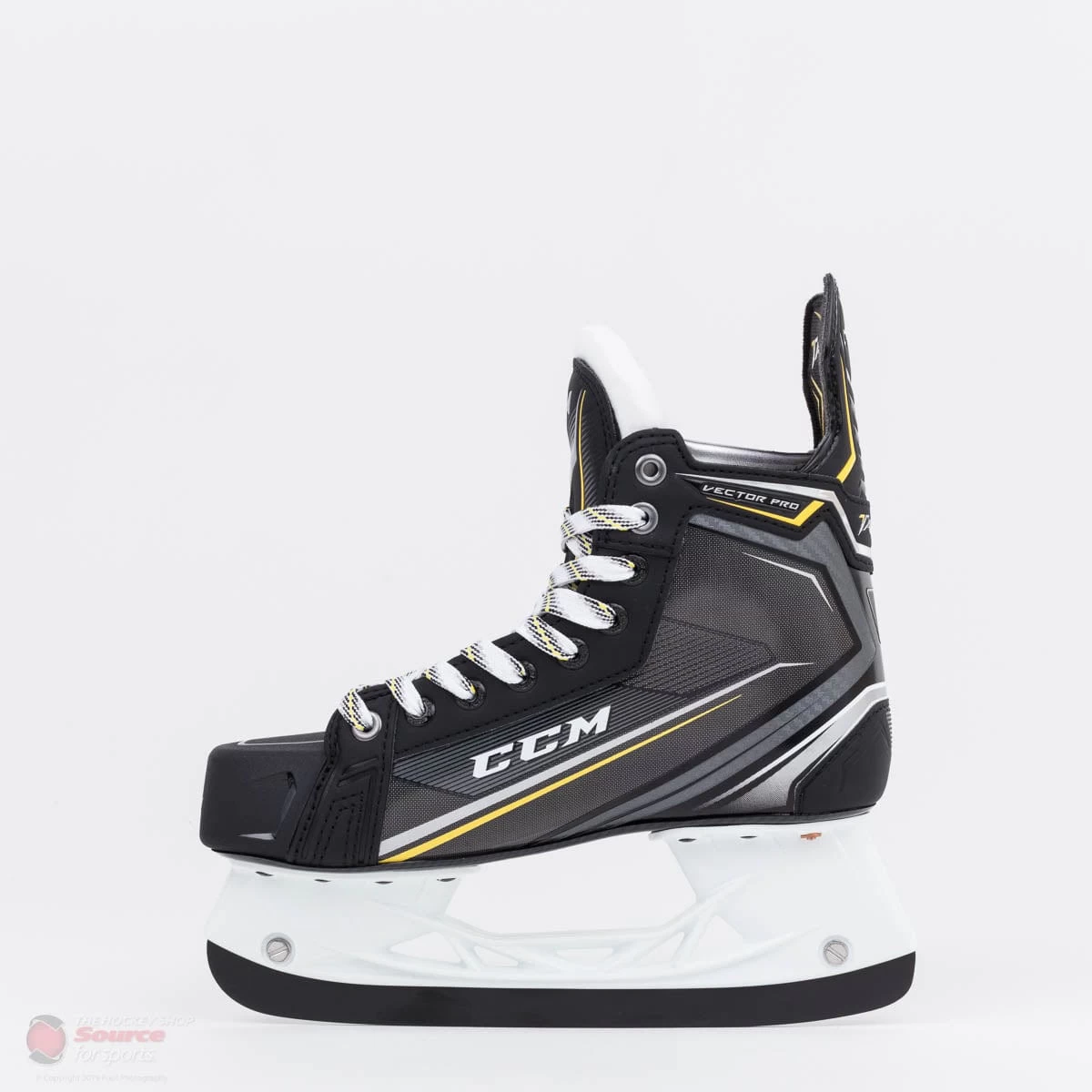The tongue on the CCM Tacks Vector Pro is taken from the AS1 skate, which uses a Tri-Tech 10mm white felt tongue with molded lace-bite protector for advanced protection, comfort, and forward flex.