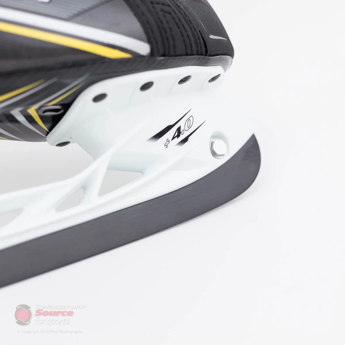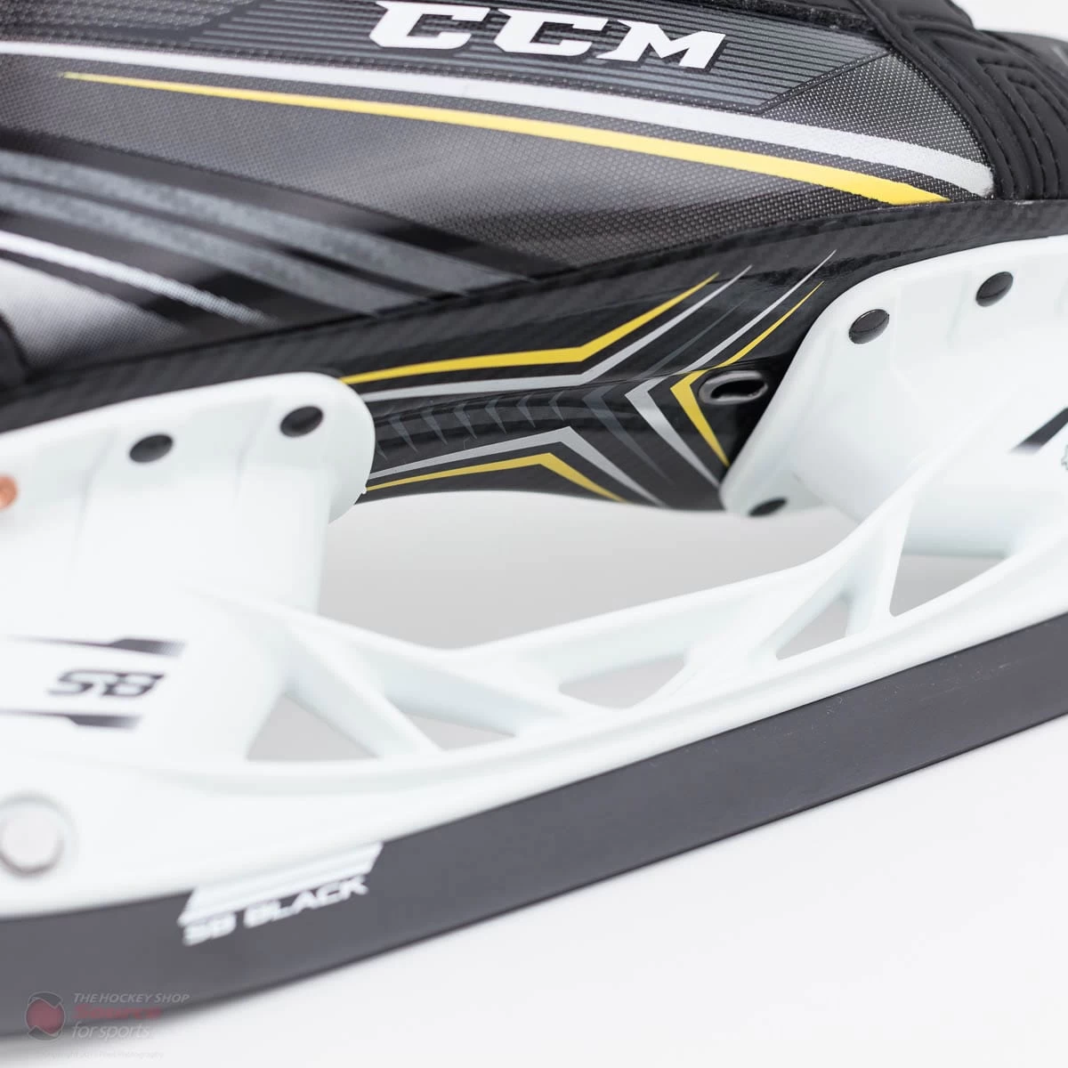 A SpeedBlade holder provides 4mm of extra height from the ice to allow for up to 10% greater turning radius for a more aggressive angle of attack. The SpeedBlade Black steel provides a carbon oxide coating to cut the ice with less friction and provide a longer lasting sharpening as well as advanced performance.