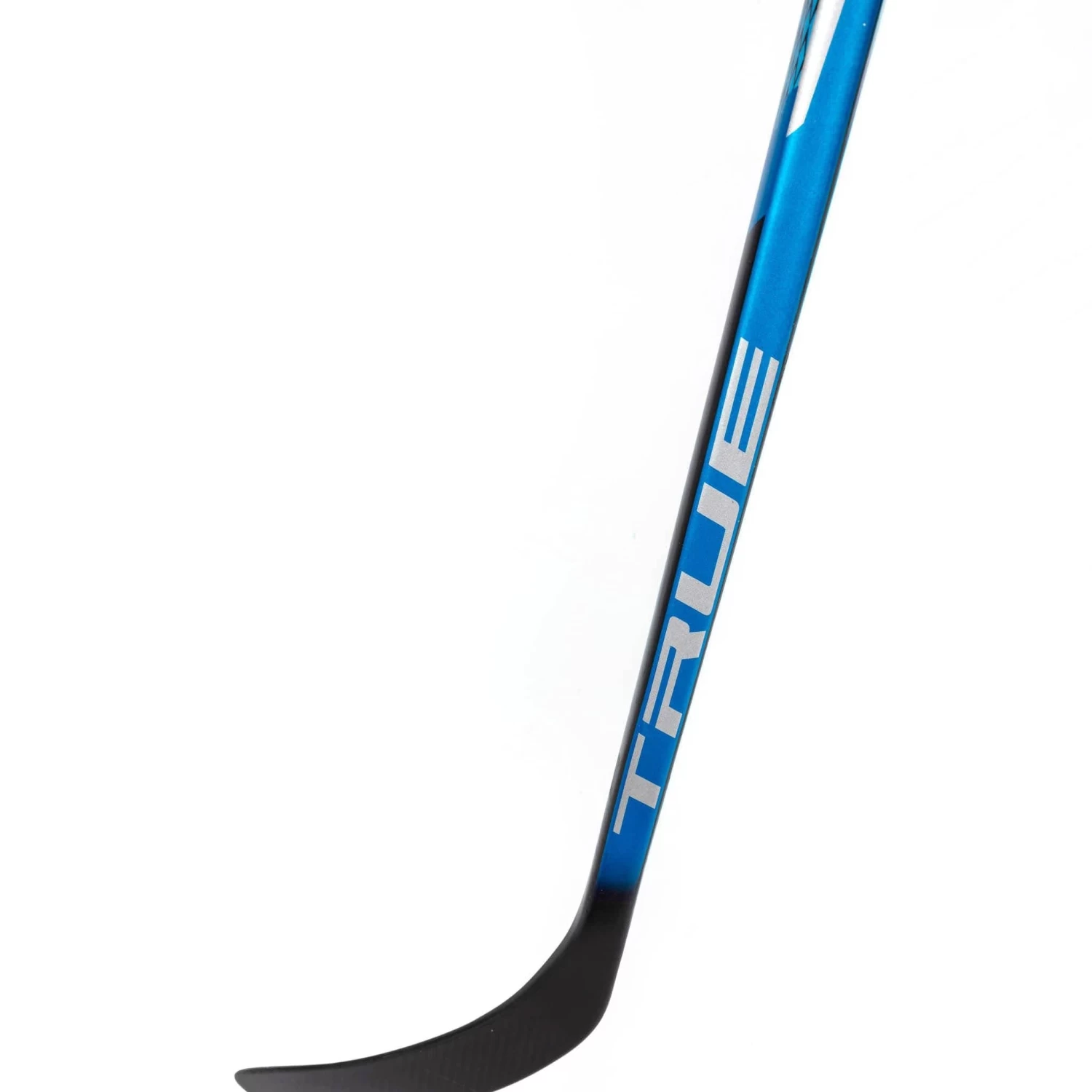 The Source for Sports exclusive True AX Pro Junior Hockey Stick is a hybrid of both the AX5 and the AX3. It features a low kick point, square corner double concave shaft geometry, the BRT+ durable blade, and SmartPly technology which all in all creates a very strong, responsive, and lightning fast stick wrapped up in a Source exclusive graphic.