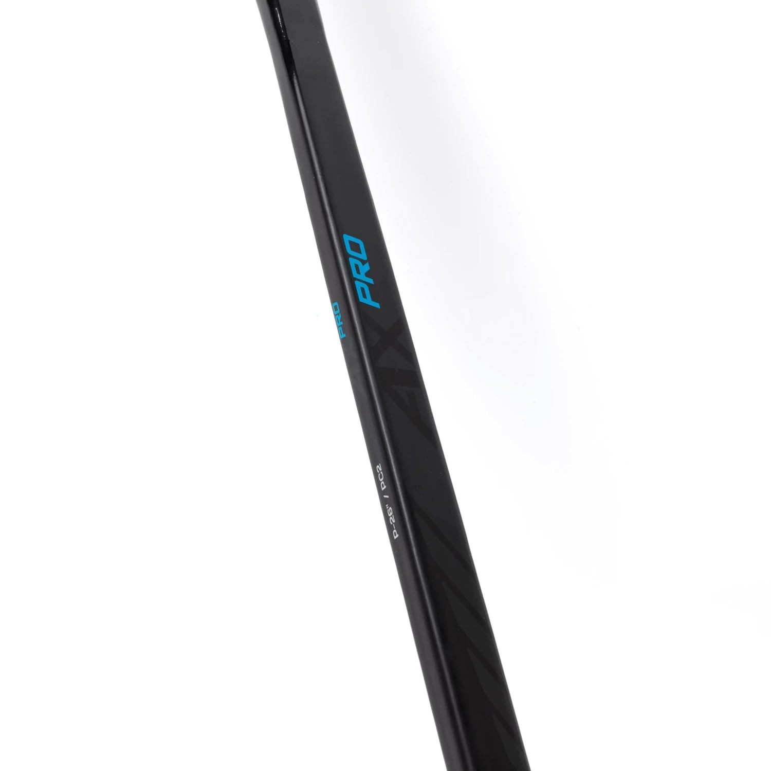 The AX Pro stick comes in a matte black paddle and shaft with matte grey lettering along with light blue Pro branding.