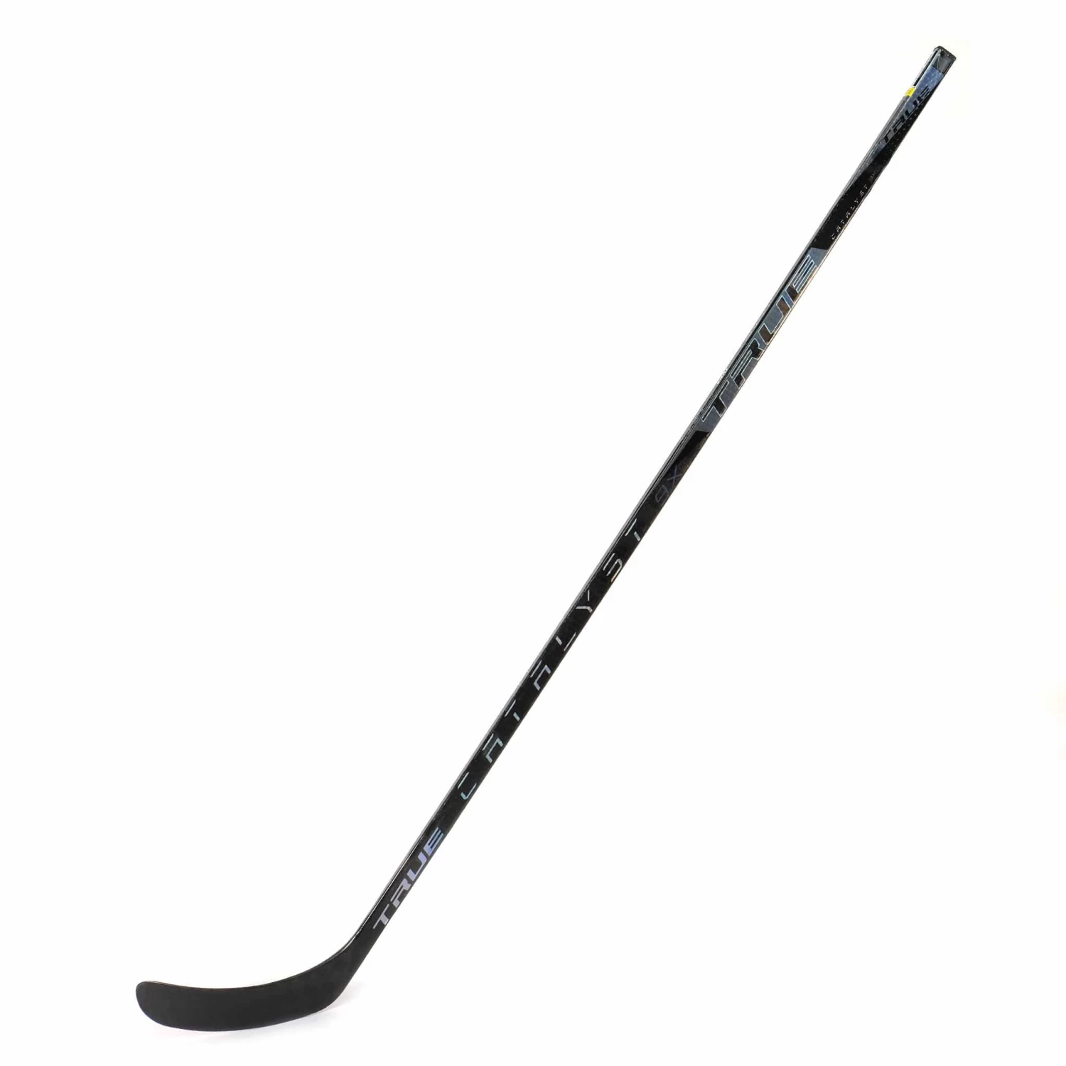This custom TRUE Catalyst 9X Pro Stock Senior Hockey Stick is a pro return from NHL player Liem O’Brien. Some of the key features that differentiate itself from the original Catalyst 9X are the sleek black, grey, and holographic graphics and the shaft is outfitted with a tactile grip similar to Warriors nipple grip.Â