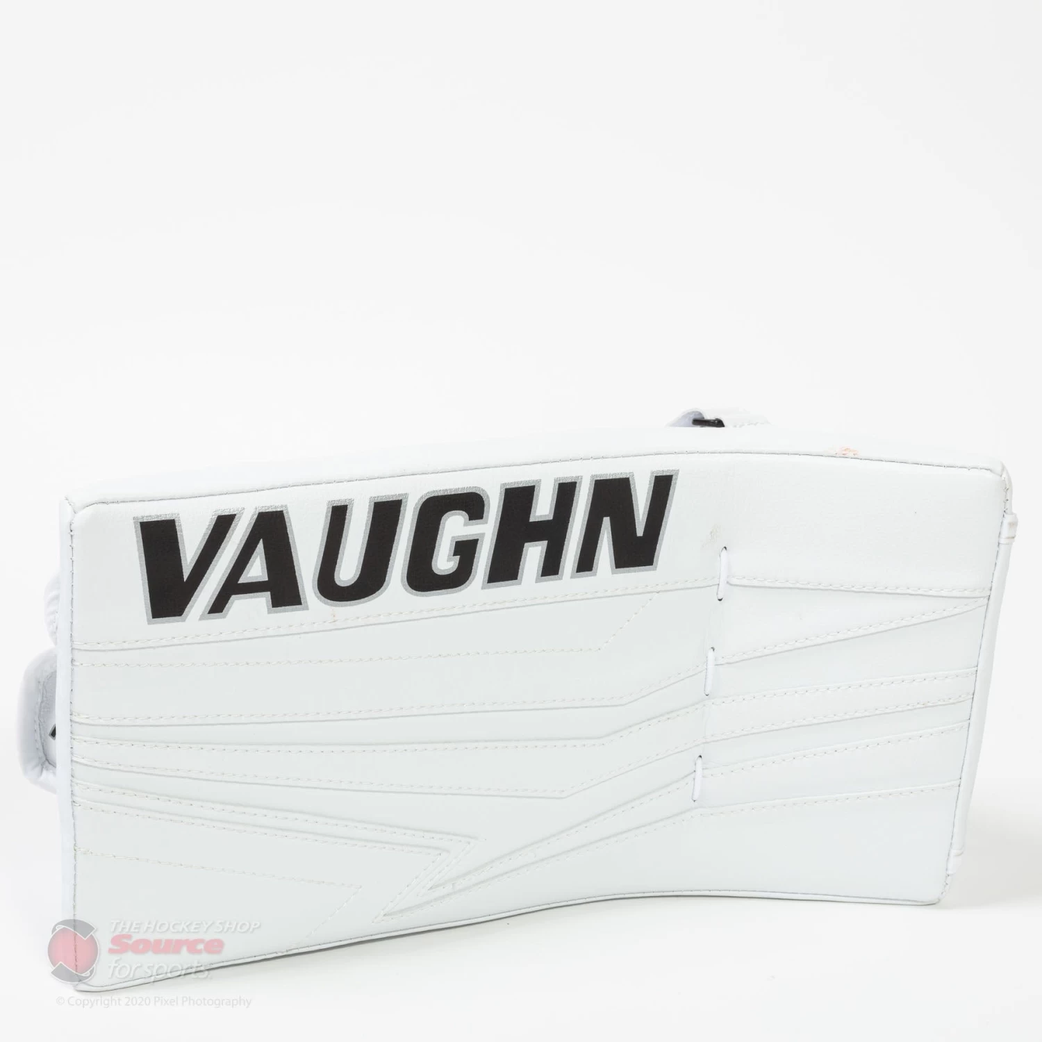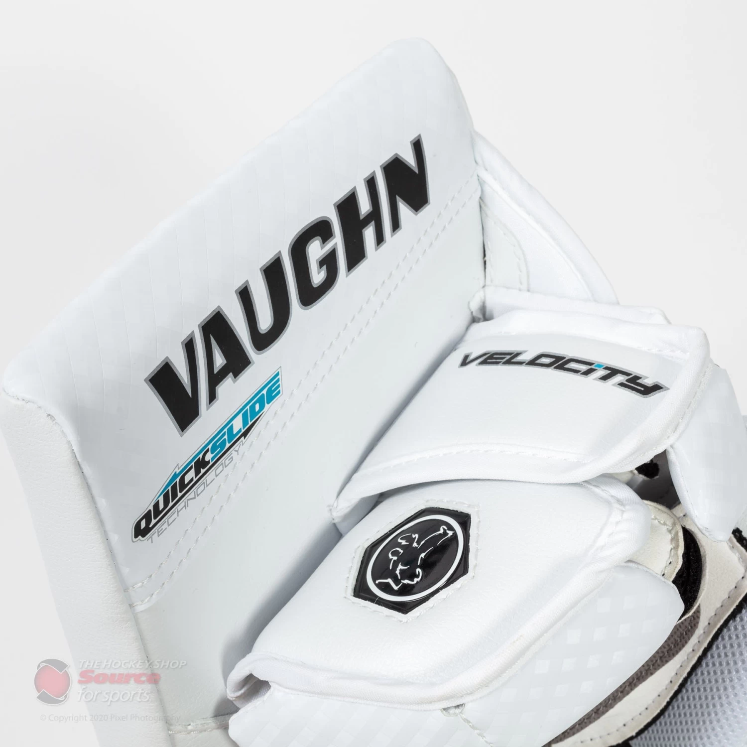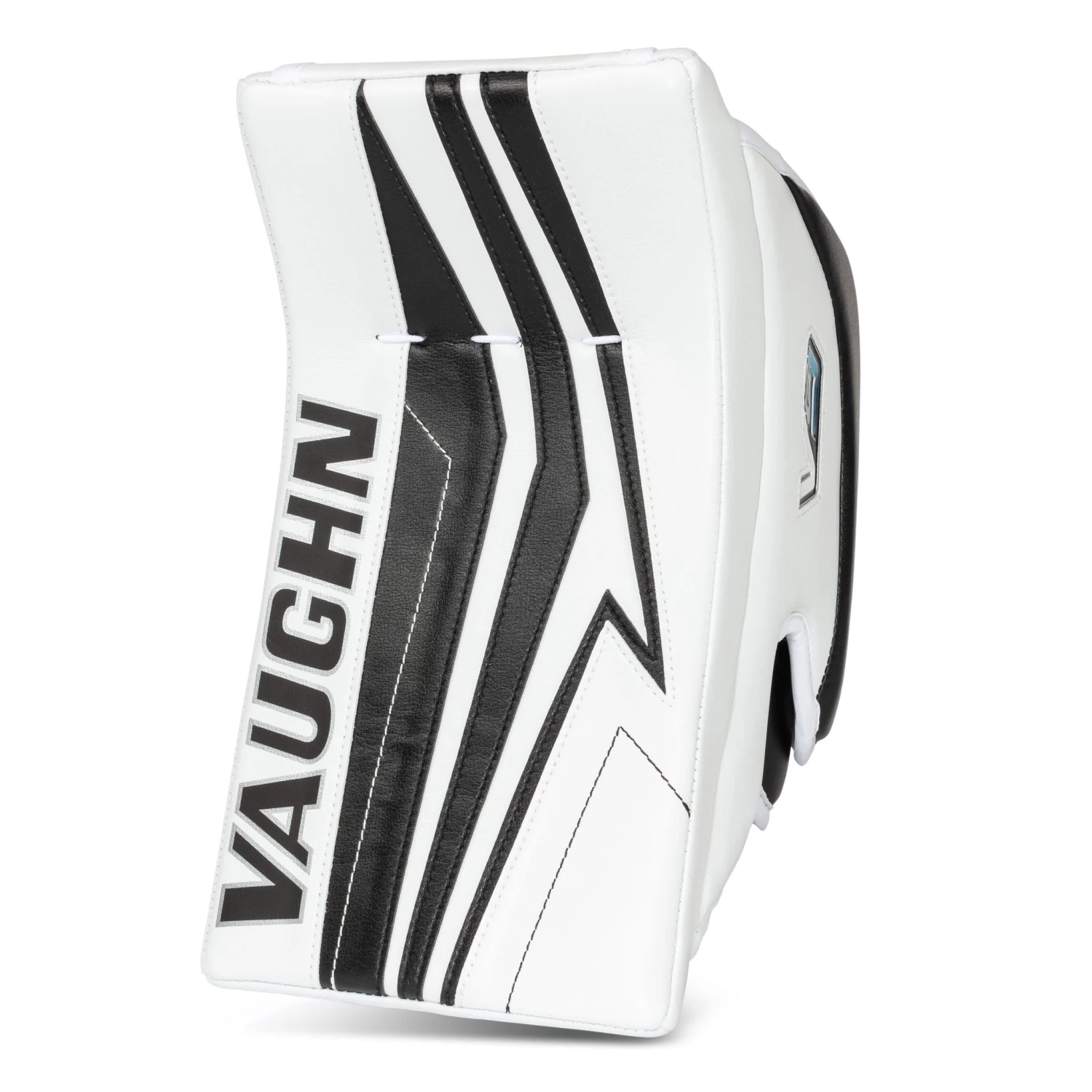 The Vaughn Velocity V9 Pro SR Goalie Blocker is designed for the performance goaltender who wants a lightweight balanced blocker. The V9 Pro Senior features a bindingless board design offering maximum coverage along with a thicker board offering increased stiffness while a composite finger protector gives superior finger protection. A redesigned soft, comfortable nash and suregrip palm features a seamless index and small finger offering a more comfortable and durable feel while a thumb pillow and a soft padded cuff offers increased protection.
