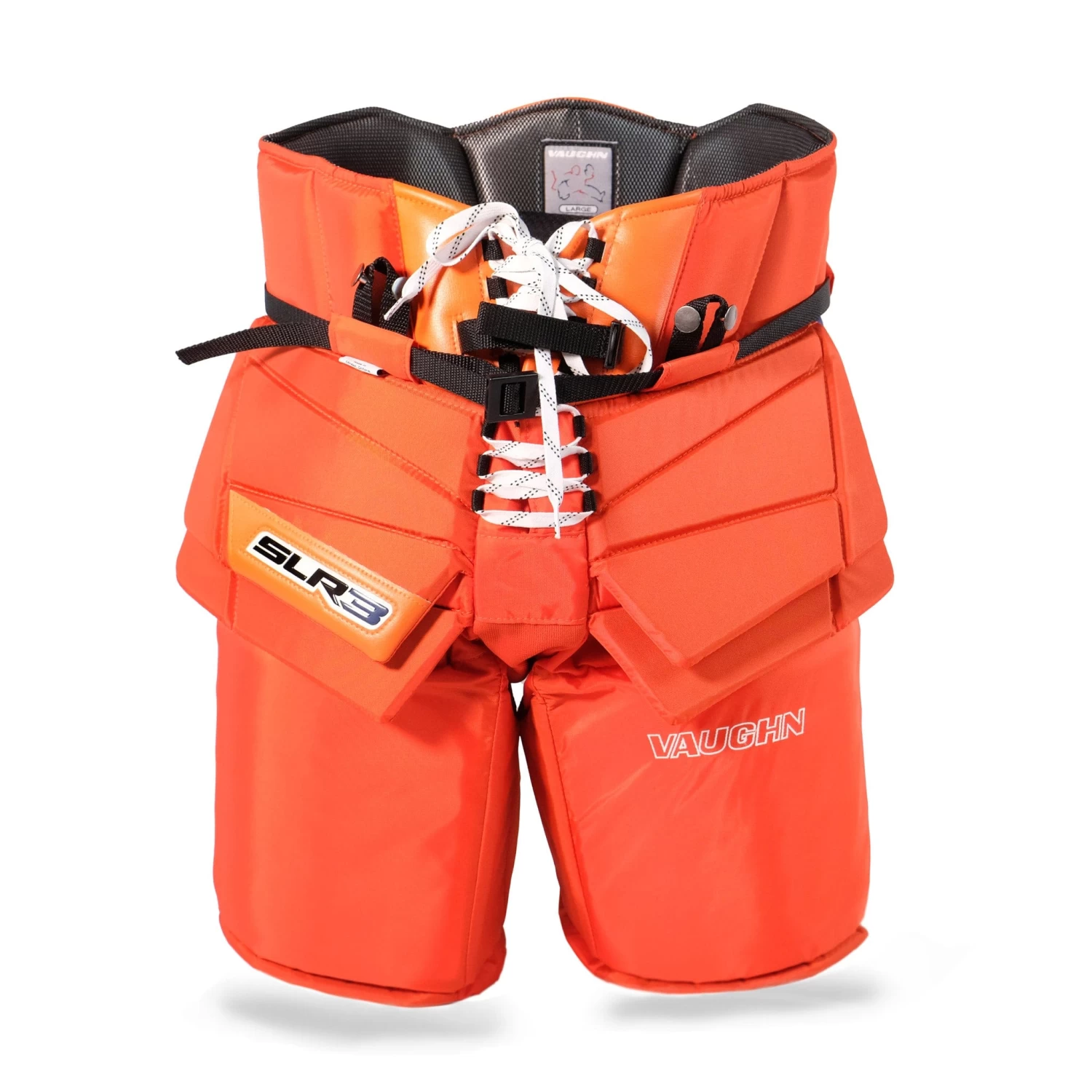 The inner belt features an internal padded support belt for easier application and a more tailored fit. The purpose of the belt is to help the pants sit up on your hips without you needing to wear them too tightly. The outside additionally features a lace-up front waist for a personalized fit and feel. The lace-up front waist allows for a wider profile to accommodate the new SLR3 arm and chest protector.