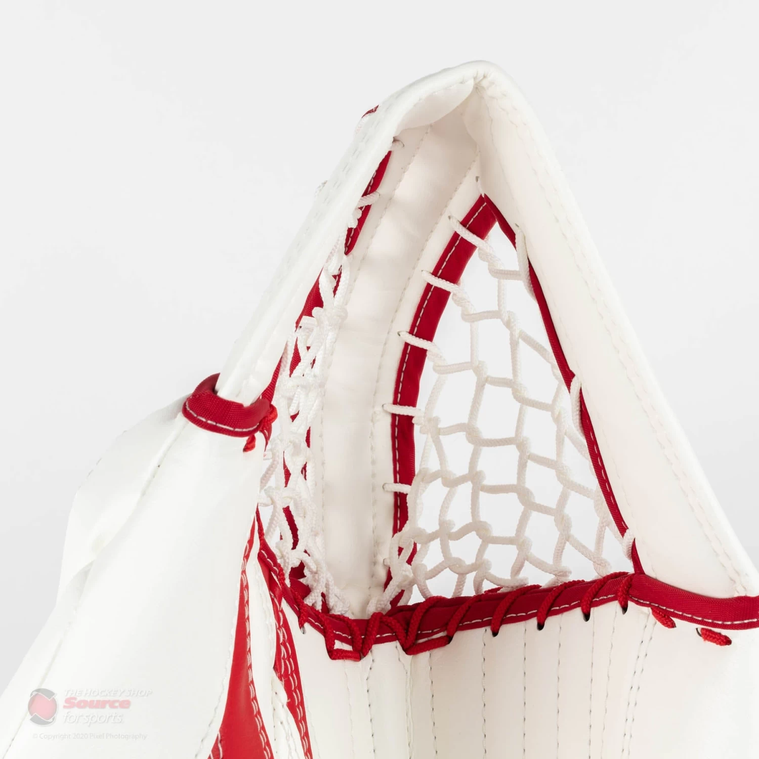 The Ritual G5 INT Goalie Glove features a single T pocket design. Usually this means a smaller pocket but Warrior has created this single T using AxyFlex technology which allows the T to hinge when the trapper is closing to allow for a more secure catch with the puck in the pocket.
