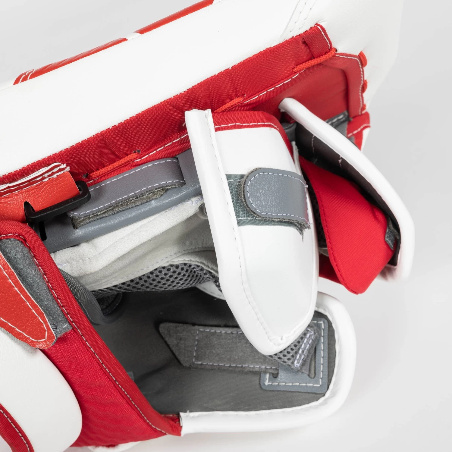 Warrior’s HyperComp reinforcement has been added to the blocker and side hand. This reinforcement is made up of carbon fibre and is designed to enhance durability while helping a bit with rebound responsiveness. The side index finger protection is also adjustable, allowing you to get the best fit for your style.