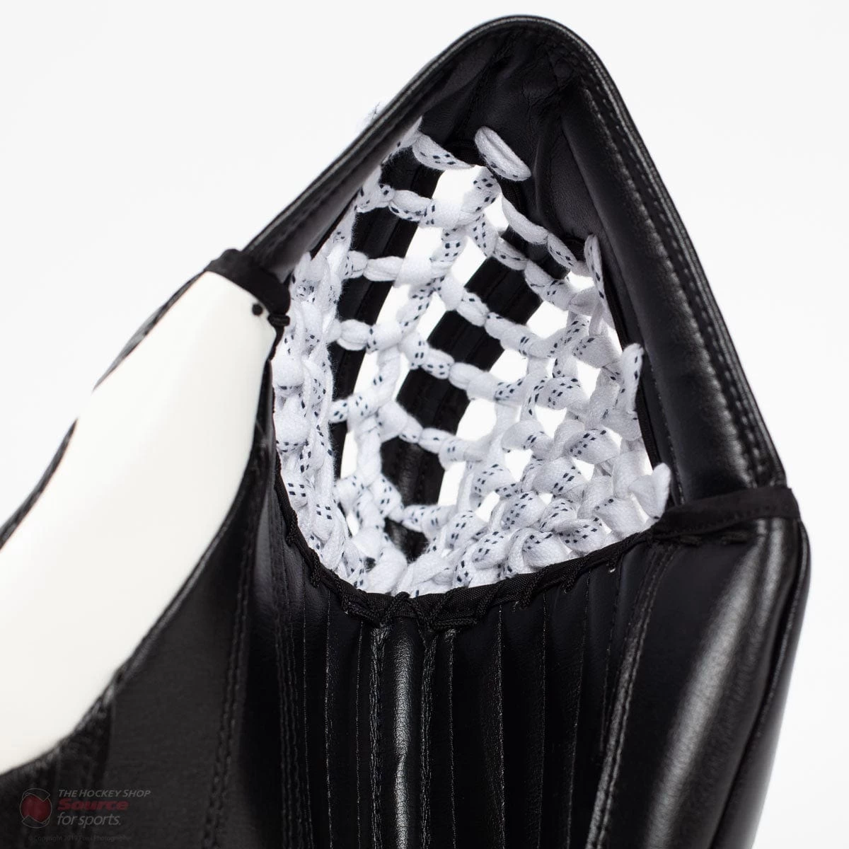 The Source Exclusive GT2 Catcher features a skate lace pocket, and upgrade over the GT2 Catalog model. The GT2 trapper comes stock with a double tee, which allows the glove to open up bigger and adds more puck retention. Not only does the double tee help open up the pocket, but the pocket itself is also bigger, the biggest ever released by Warrior to be exact.