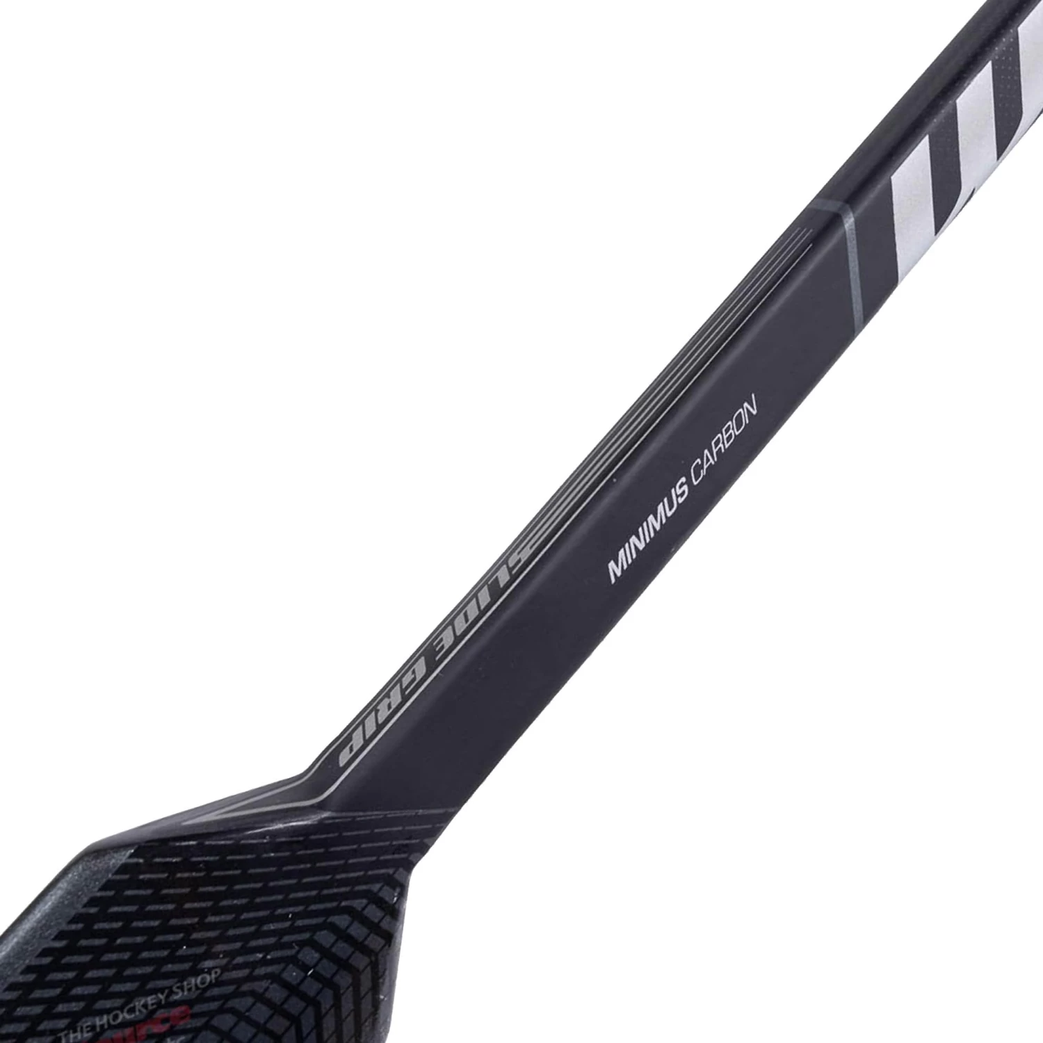 The blade of the Warrior V2 E composite goalie stick is made with the same Minimus Carbon construction that the rest of the stick. The Minimus Carbon is a material that provides solid stiffness without breaking the bank.