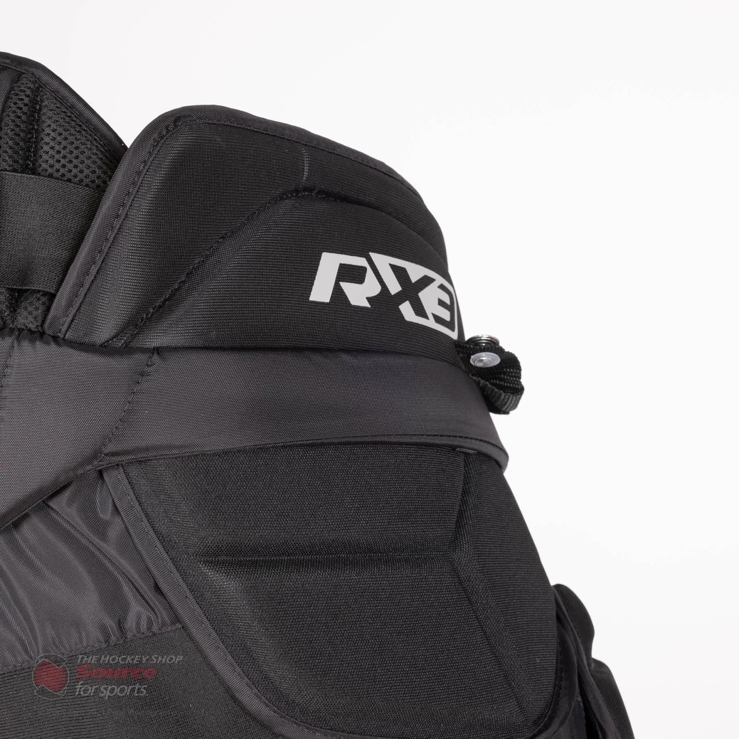 The Warrior Ritual X3 E+ INT Goalie Pants has new redesigned kidney and hip protection. The Warrior X3 E+ goal pants feature HyperComp in the FlexPlates to improve the durability and protection in those areas. The Ritual X3 E+ pants have added AxyCut Design which maximizes the thigh protection, as well as reinforced high wear areas on the pants.
