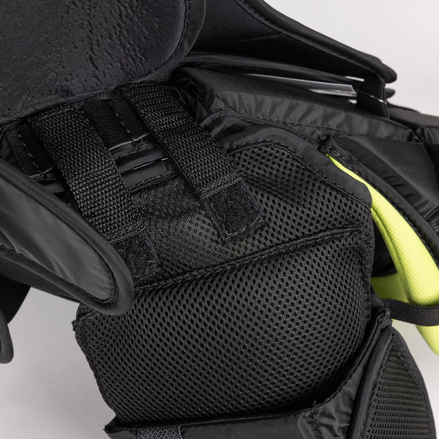 Warrior continues to use nylon and mesh on the exterior of the X4 chest and arm protector, which provides durability while still keeping the pads comfortable. It also allows the chest protector to be breathable, preventing you from overheating while on the ice and making saves.